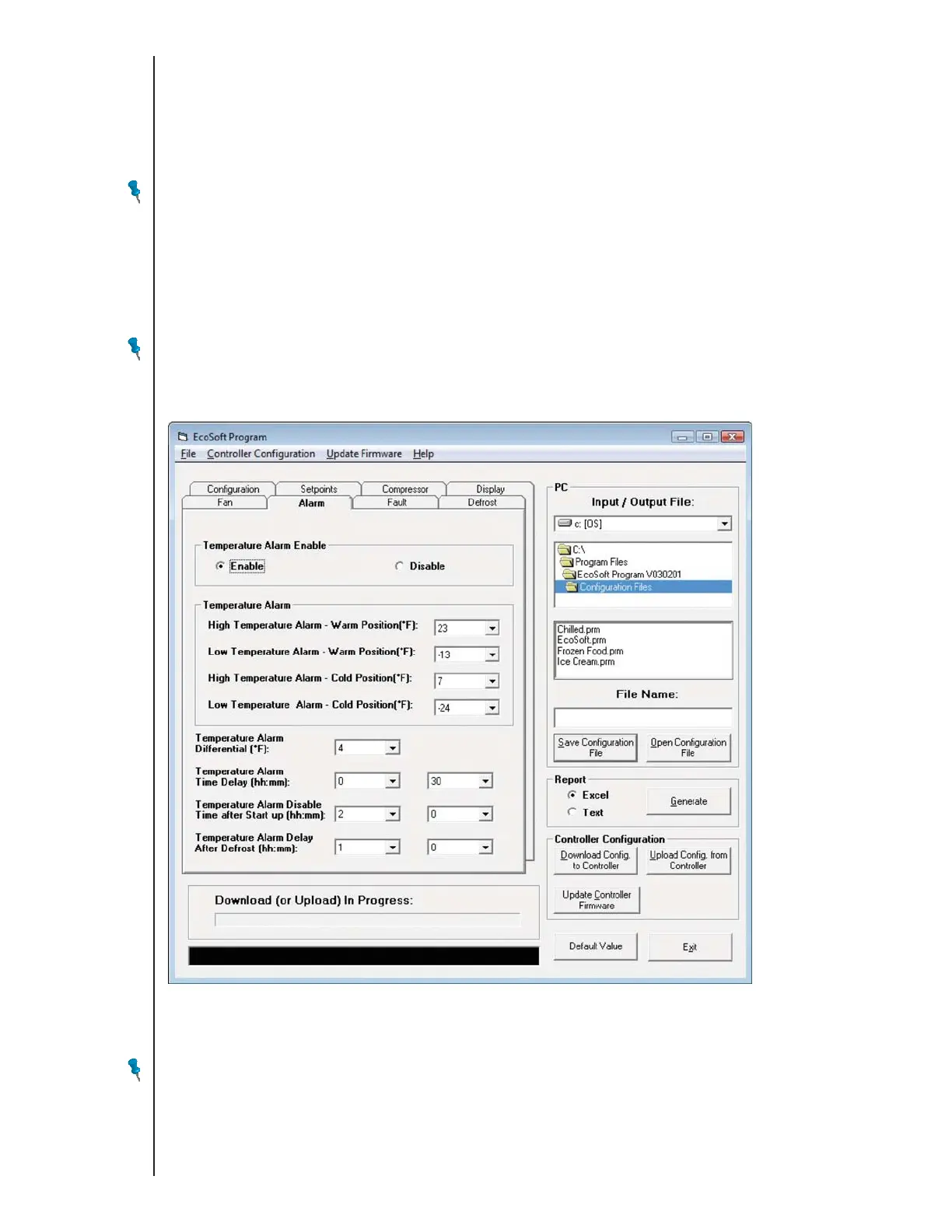 NOTE: Temperature Alarm Enable does not affect alarms due to a control or evaporator sensor short or open circuit, or a firmware (check sum) error.