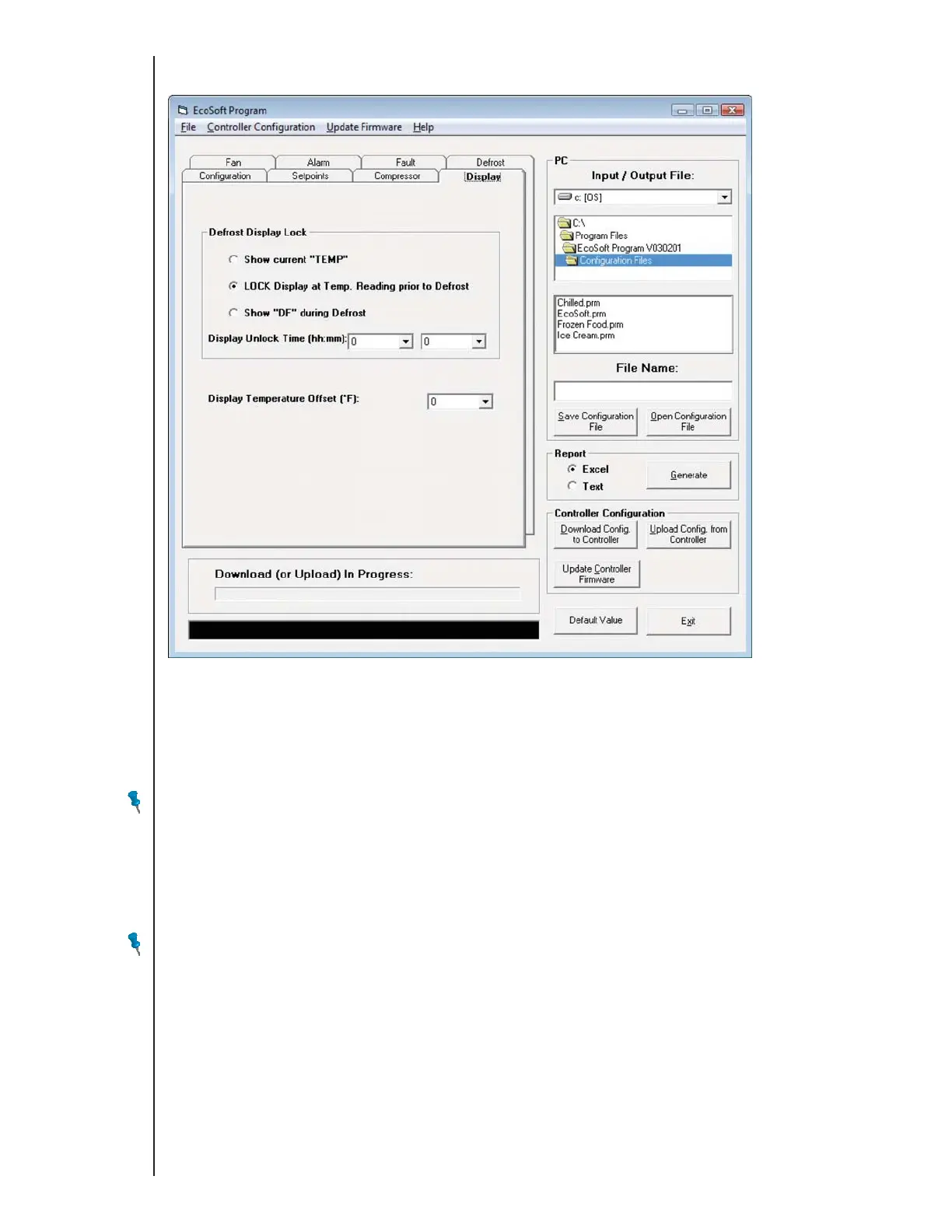 Use the Display tab to specify what is displayed during defrost and to specify a display temperature offset.