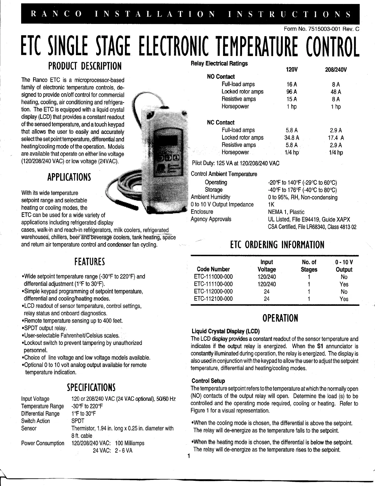 The Ranco ETC is a microprocessor-based