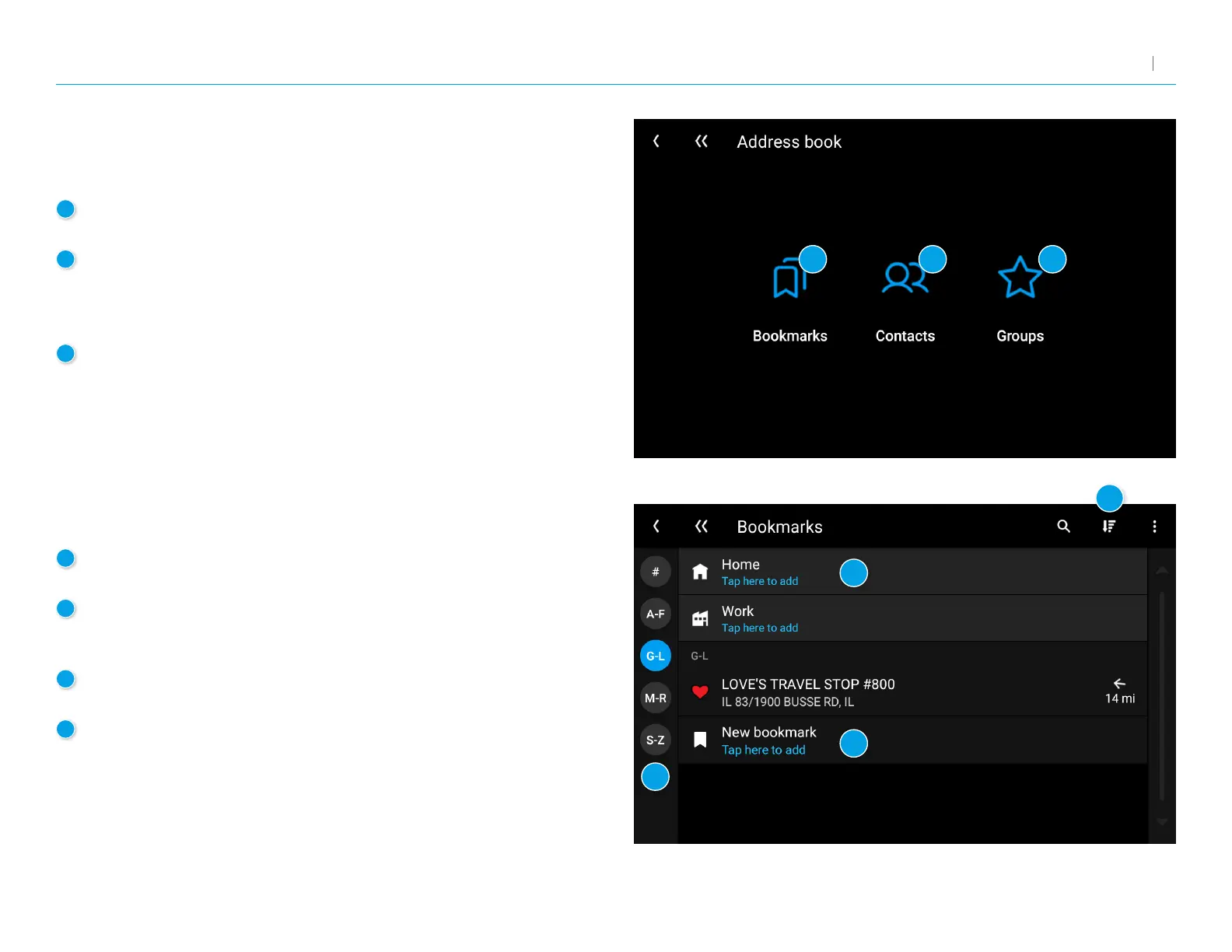 Tap a letter group to view bookmarks alphabetically. This is useful