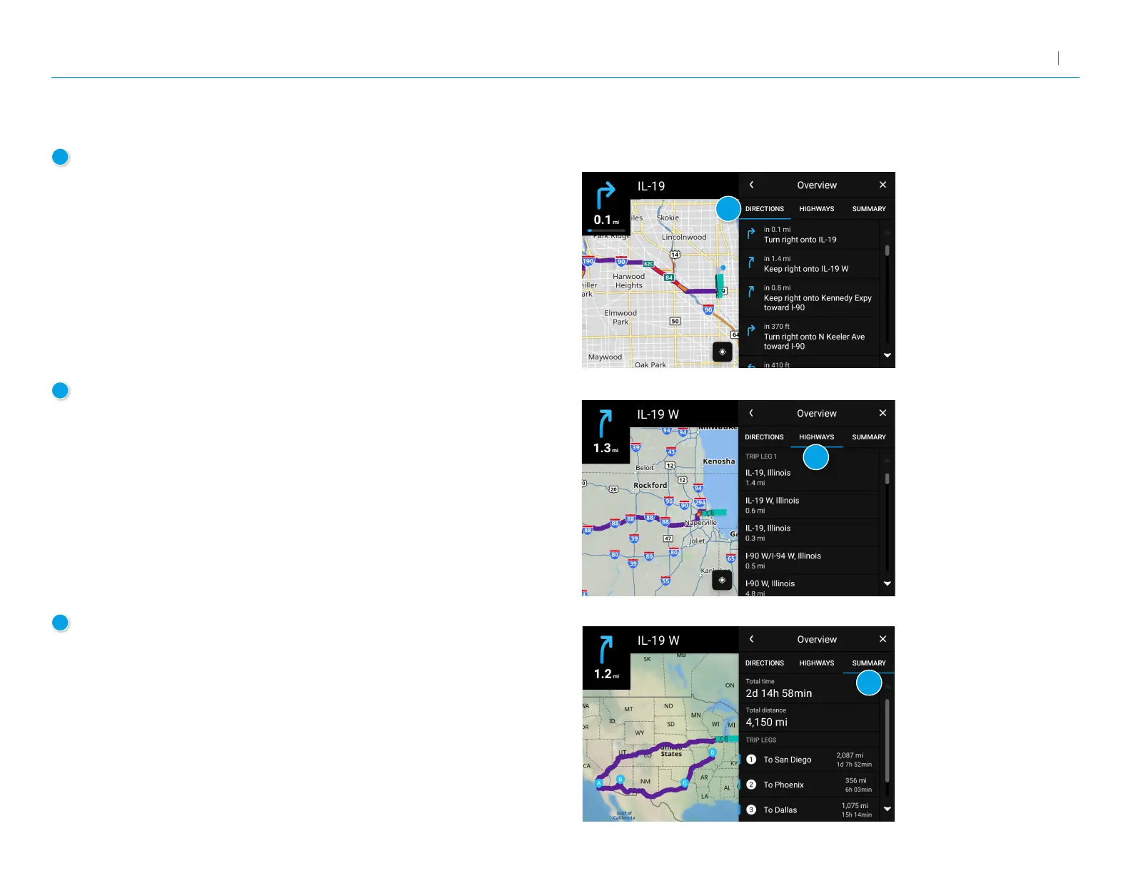 Displays only the highways along your route, with the