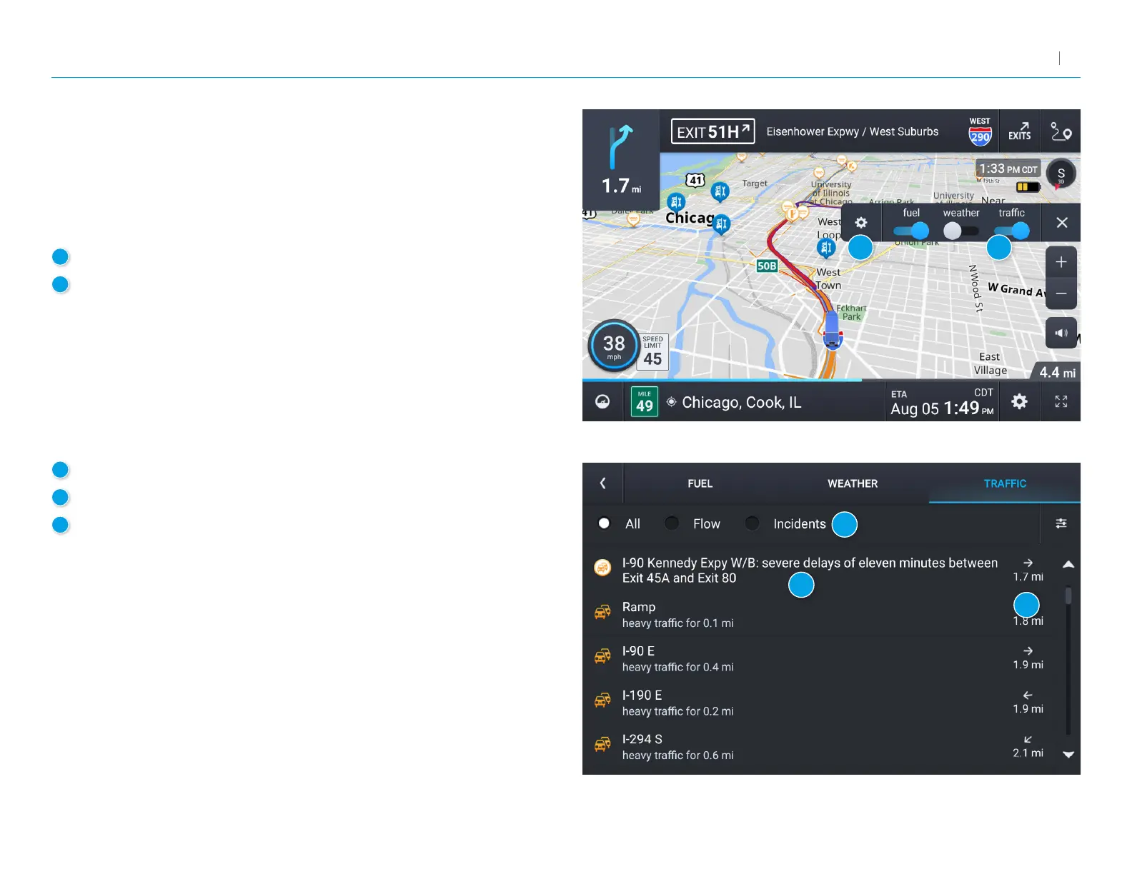 Select to view trafc ow, incidents, or all.