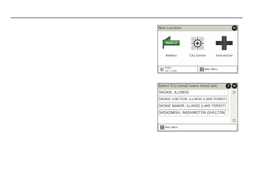 4. Prompts appear in the top bar. Tap the city to select. Or,