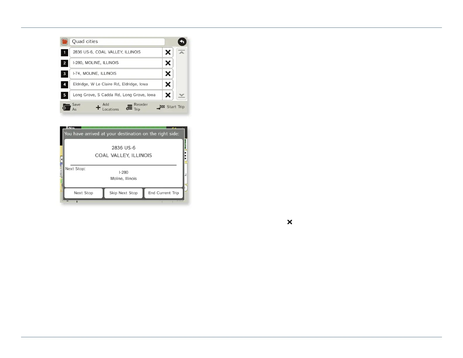 • Skip Next Stop - To skip the next stop and calculate a route