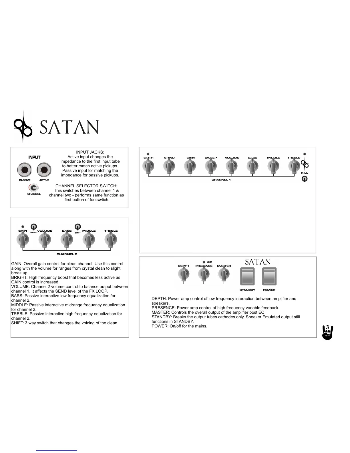 KILL: Preset upper mids gain boost for channel 1. Full frequency boost for channel 2.