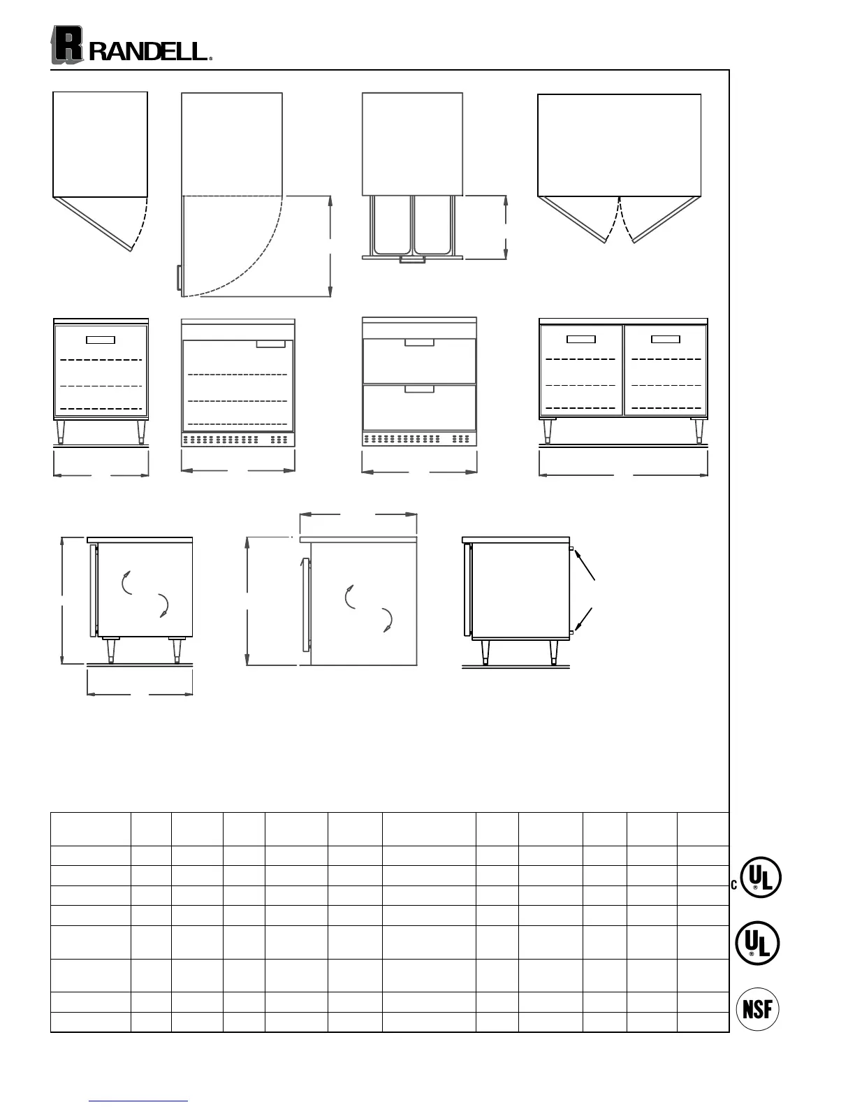 Drawings are to be viewed in the same order as the chart, one drawing to represent refrigerator and freezer units