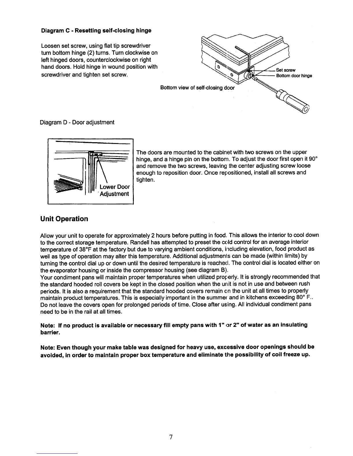 Randell 9030K-7 - Unit Operation; Initial Cool Down; Temperature Adjustment