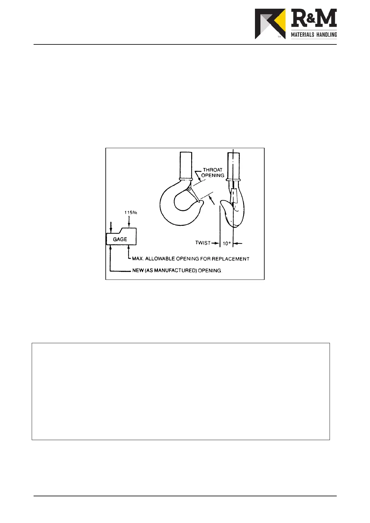 k hooks for deformation or cracks. Hooks must be replaced if throat opening has increased by more