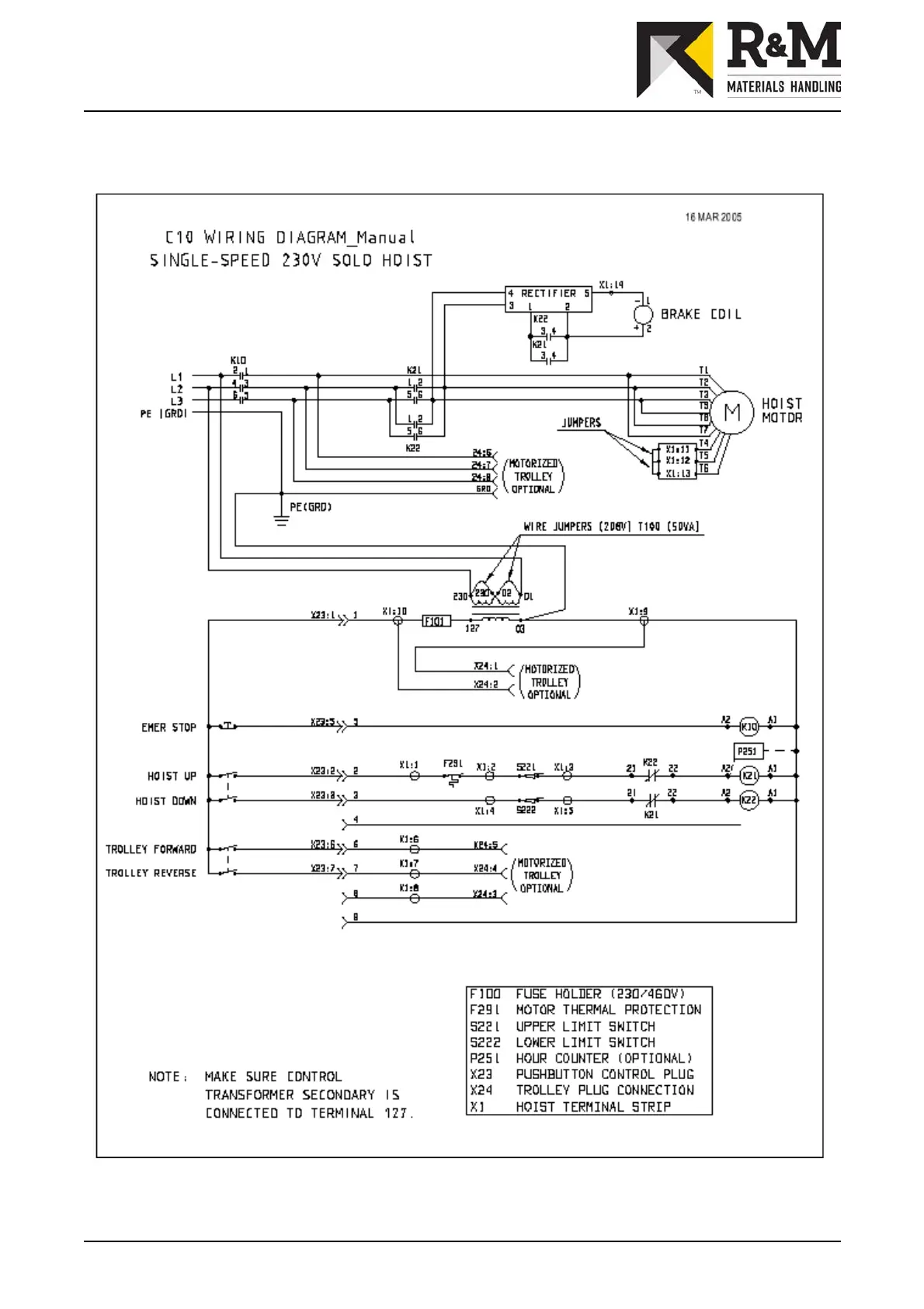 7.13 Single-Speed Solo Hoist – 230 Volt Wiring Diagram