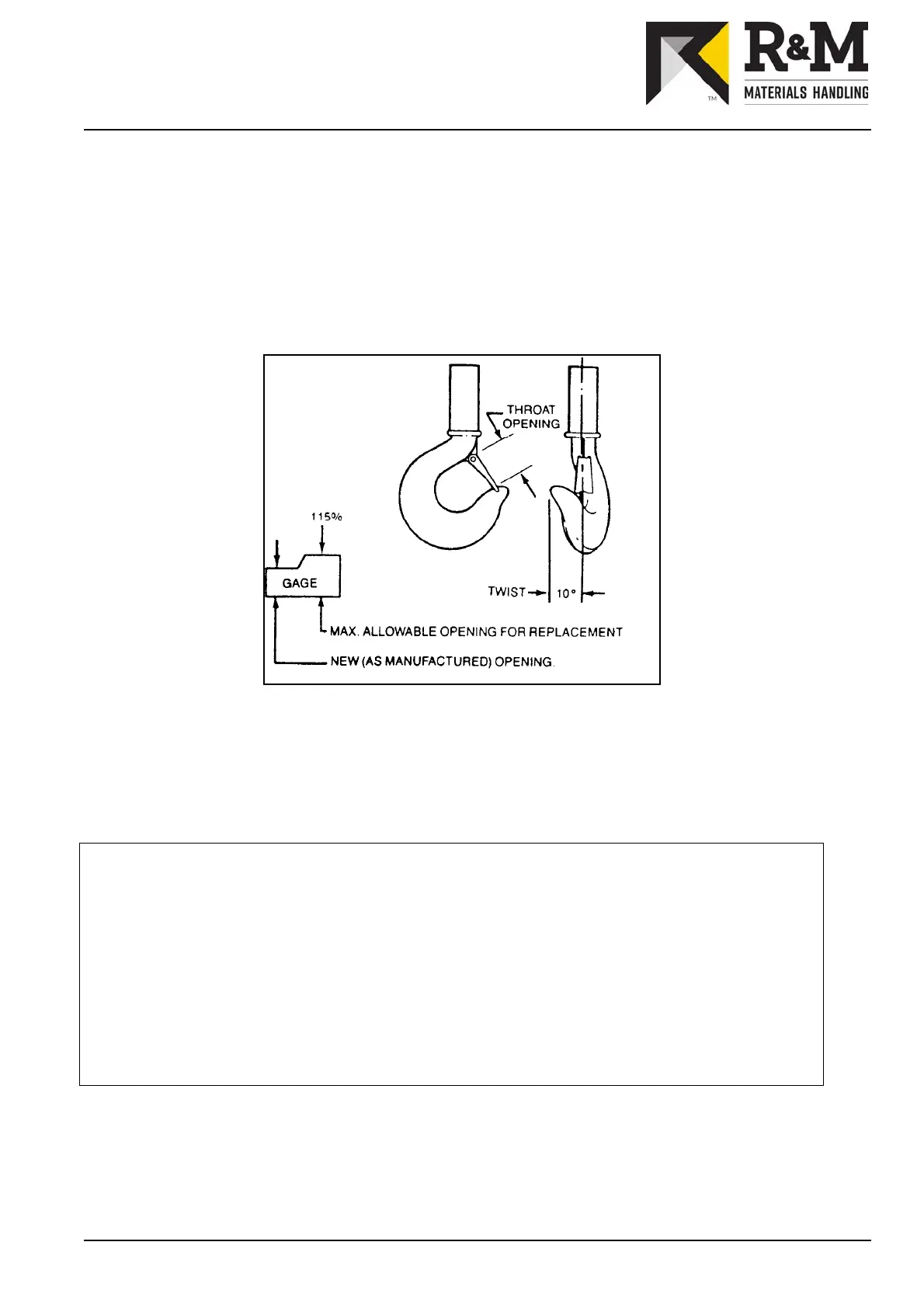 ck hooks for deformation or cracks. Hooks must be replaced if throat opening has increased by more