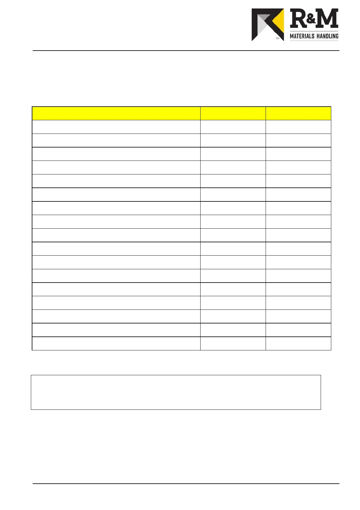 This document and the information contained herein, is the exclusive property of R&M MATERIALS HANDLING, INC. and represents a non-public, confidential and proprietary trade secret
