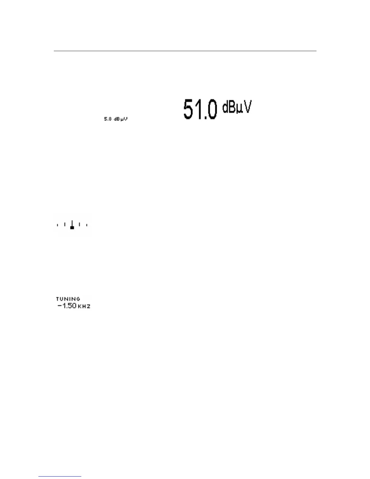 The numeric level value is also displayed in different sizes. The value is displayed in dBµV with a