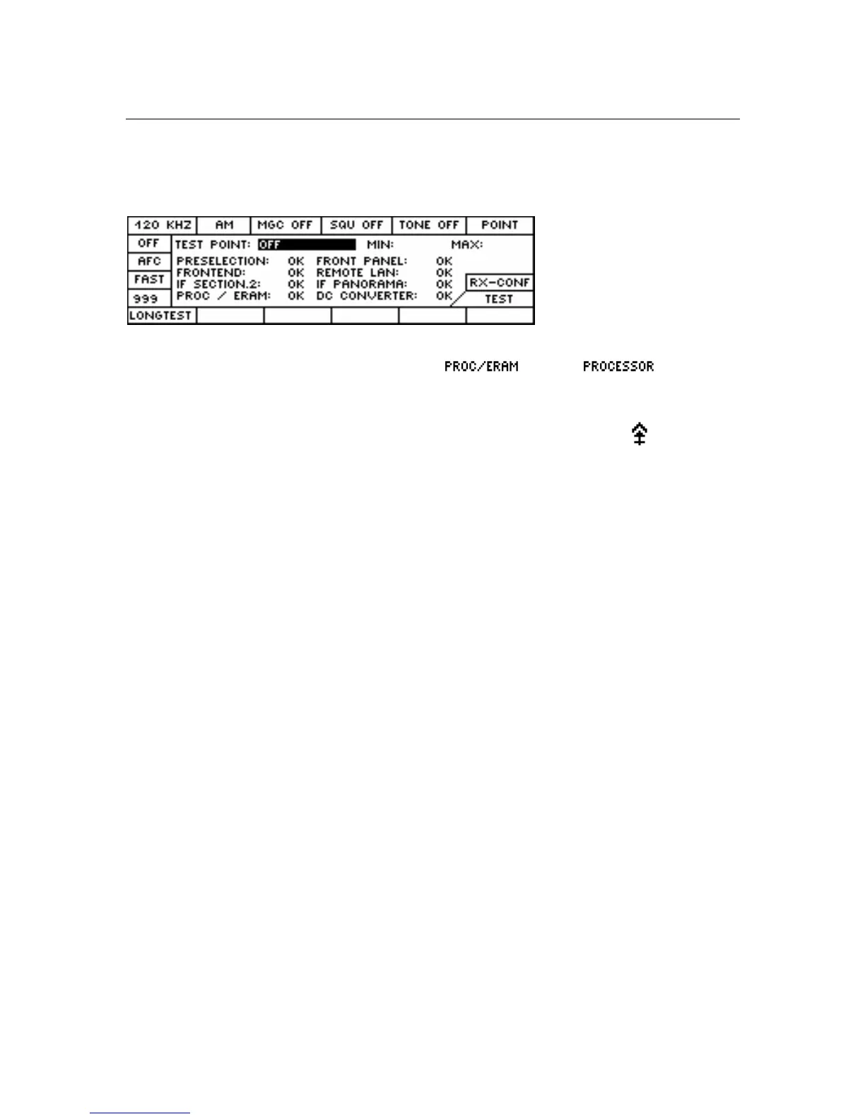 This menu is obtained by pressing the TEST softkey in the RX-CONF menu
