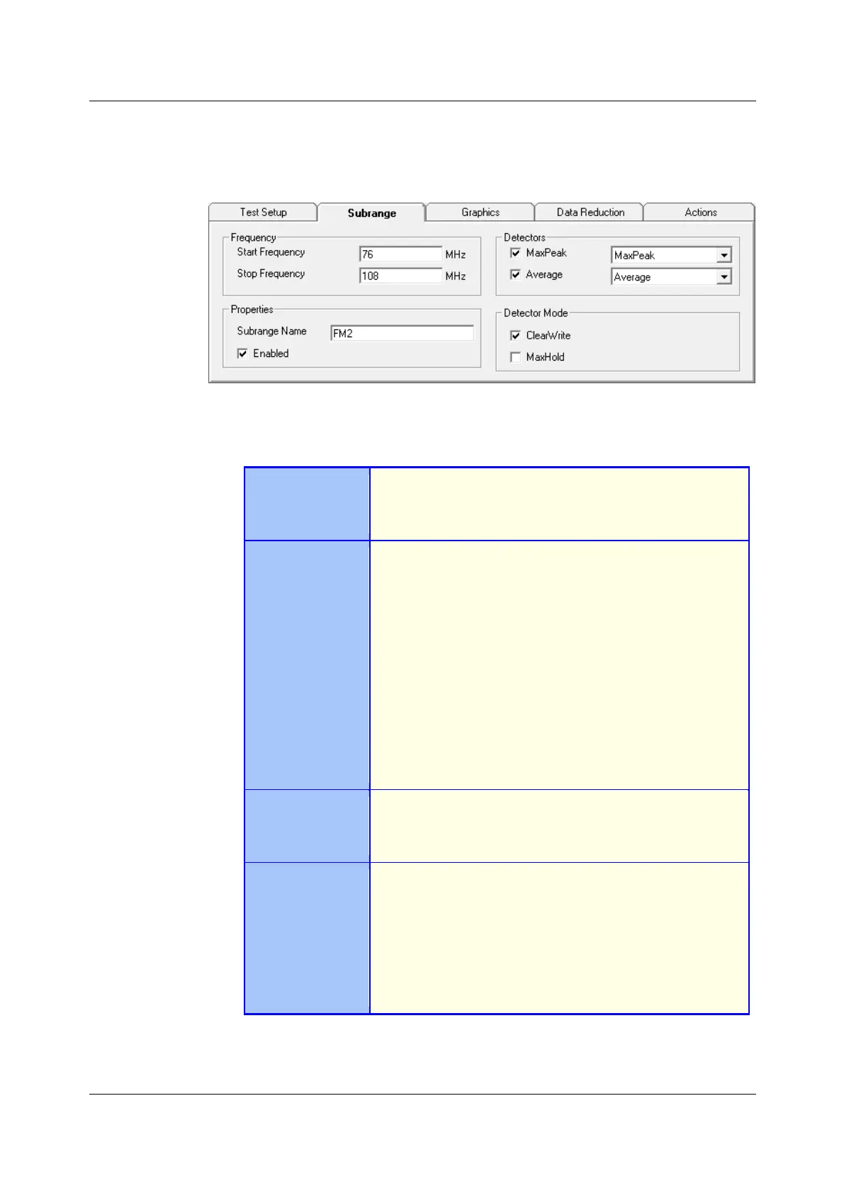 Table 3-2: Setting in the Subrange tab