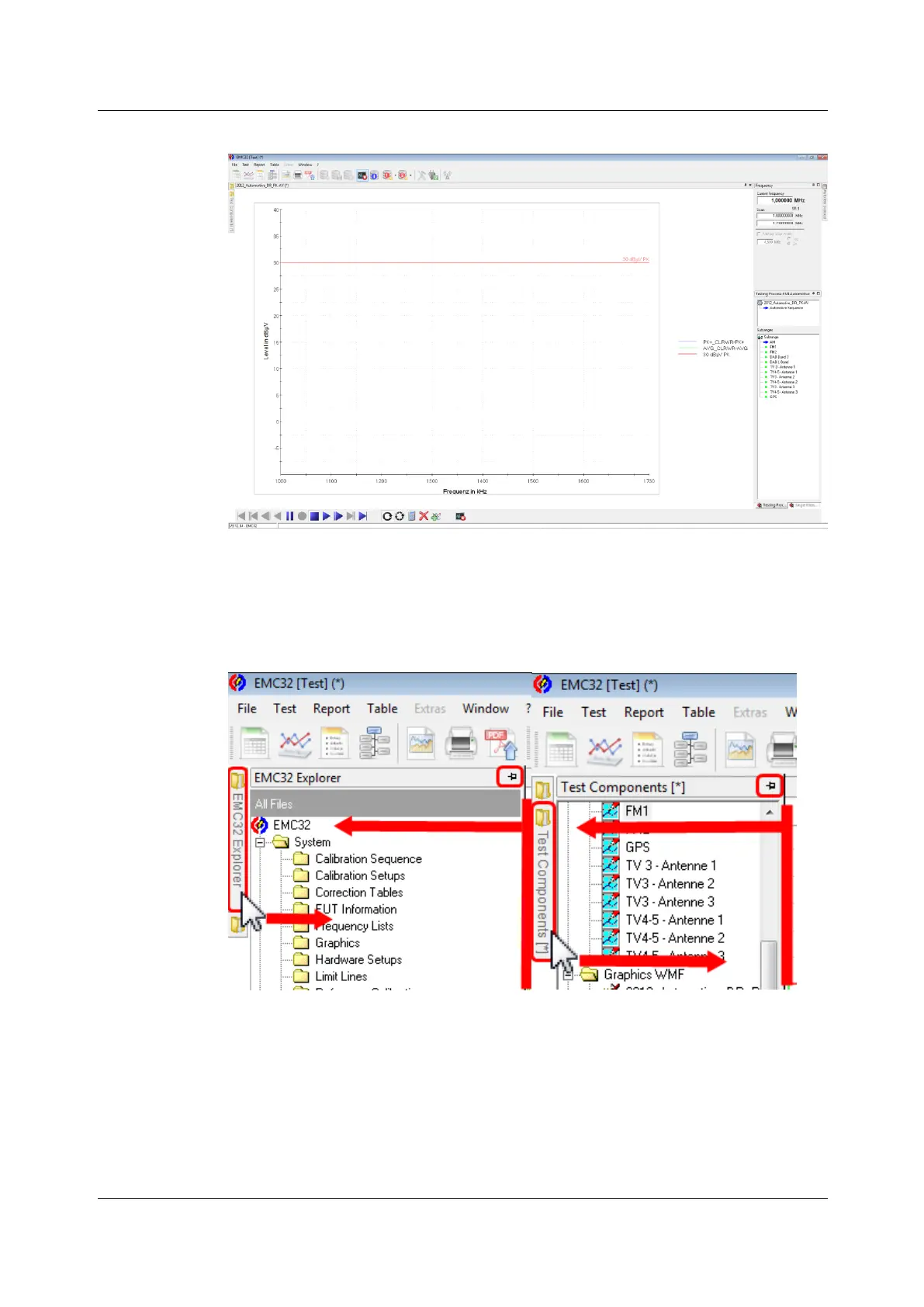 Figure 33: As long as the Explorer is unpinned the EMC32 Explorer OR the Test