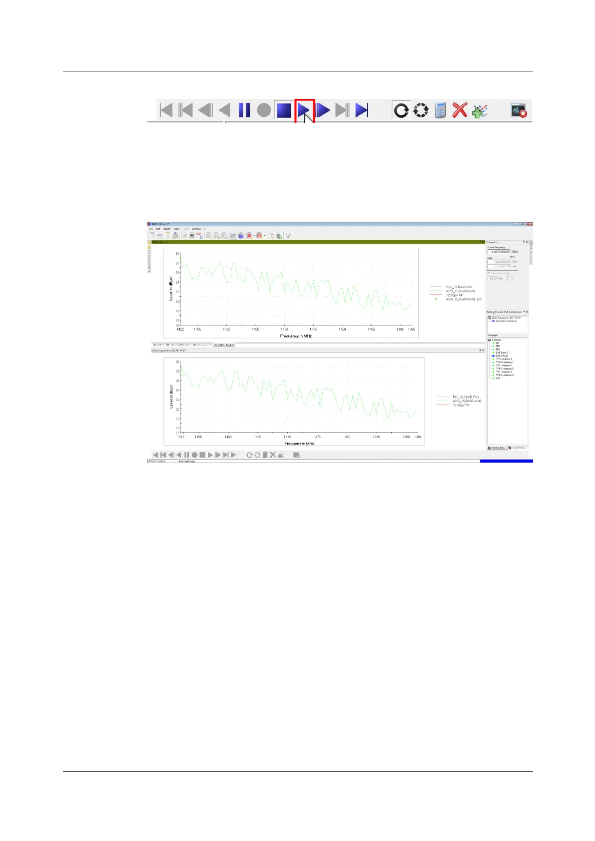 In the upper graphics area all measured frequency bands are shown in the tree view