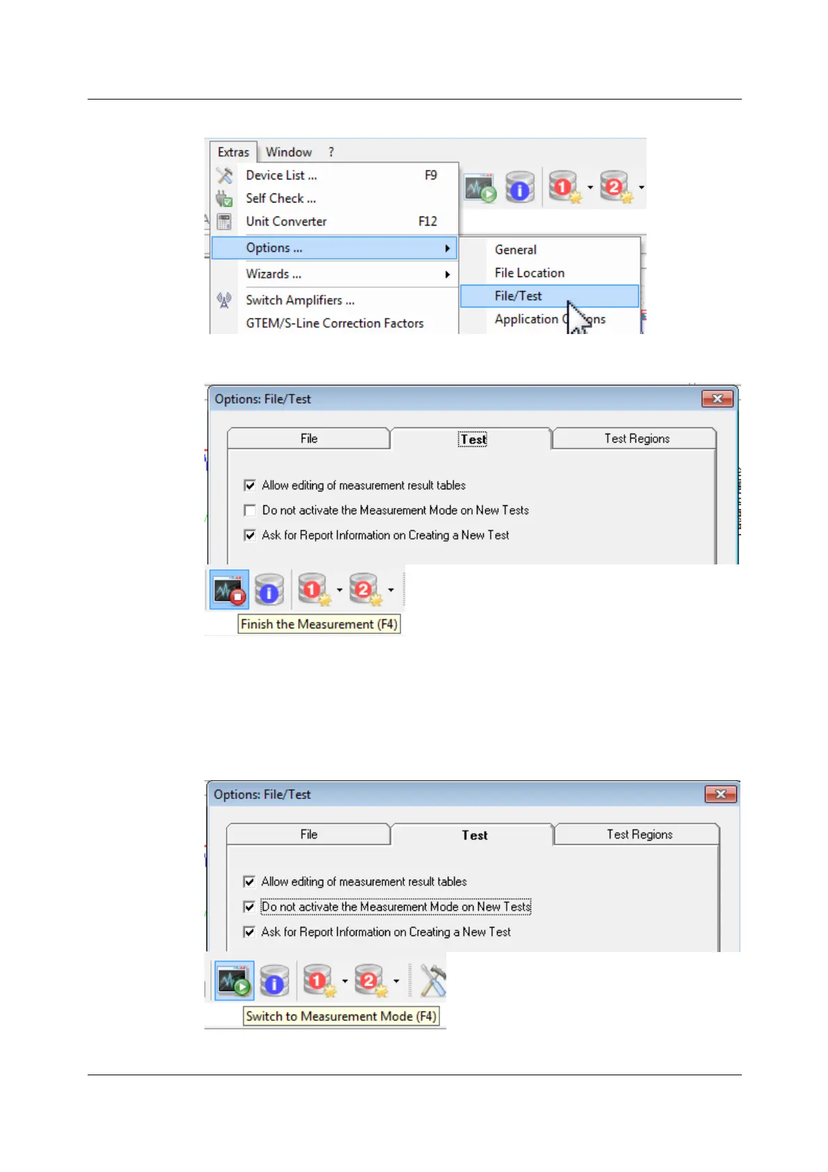 Figure 53: If "Do not activate the Measurement Mode on New tests" is unchecked