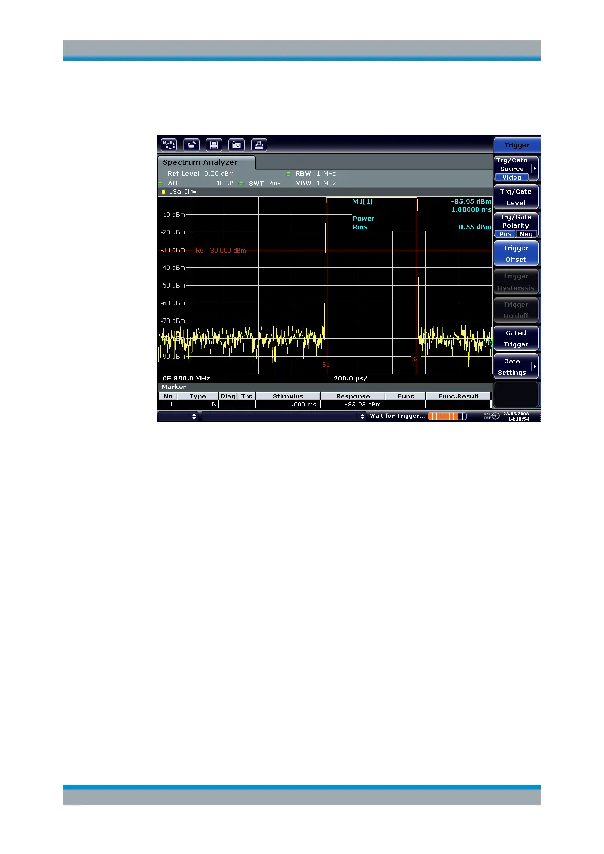 g) Using the rotary knob, move the second vertical line to the end of the burst.