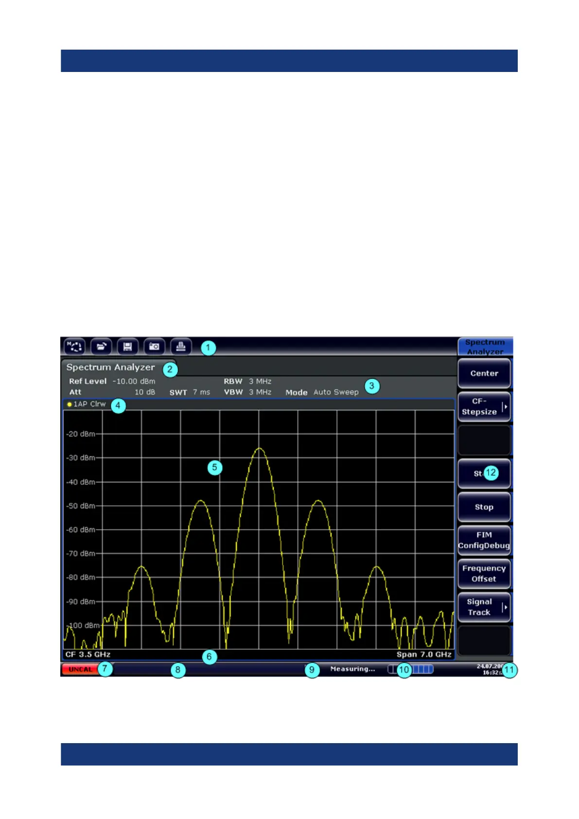The touchscreen on the front panel of the R&S ESR displays the measurement
