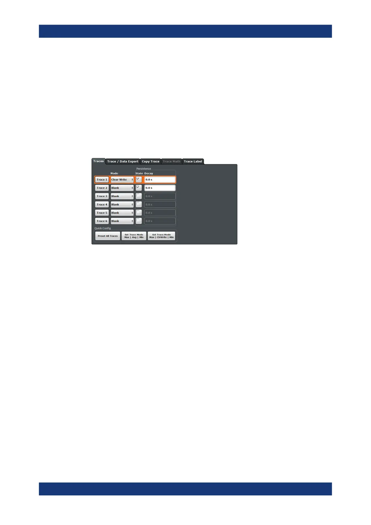 Settings in the "Traces" dialog box described elsewhere: