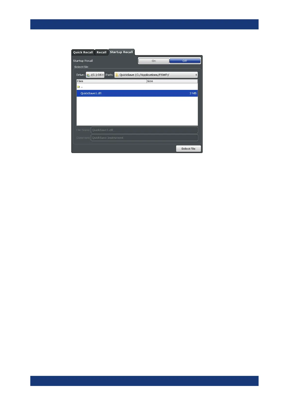 the selected file are loaded each time the instrument is started or preset. If deactivated,