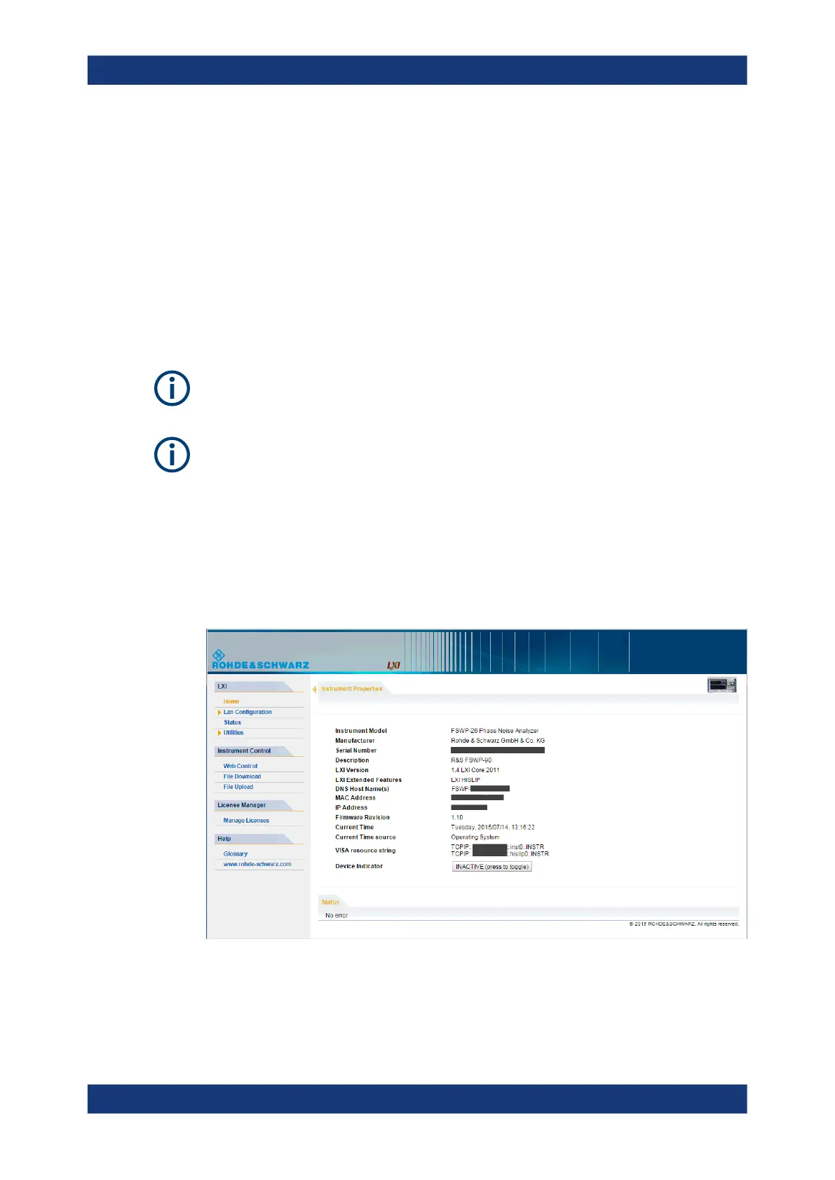 Via the web browser interface to the R&S FSPN you can control the instrument