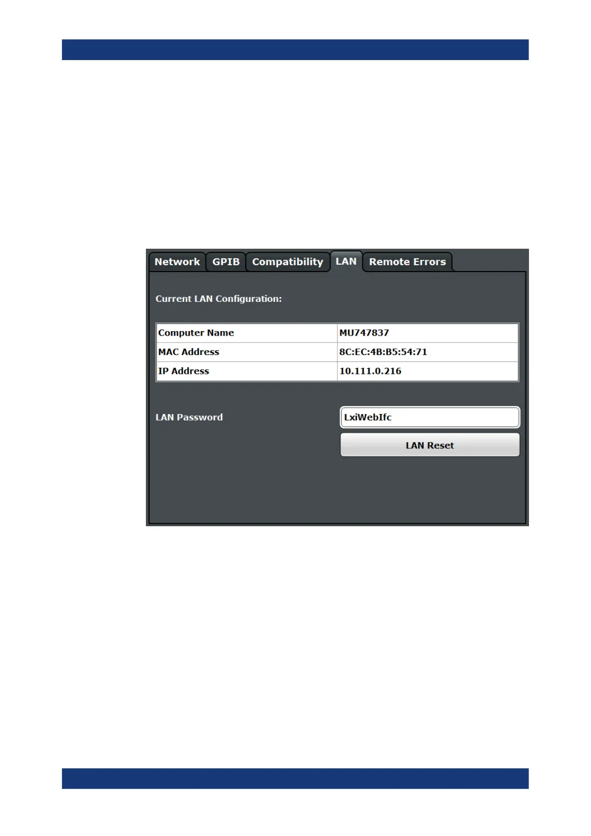 Displays the current LAN information from the R&S FSPN (read-only).