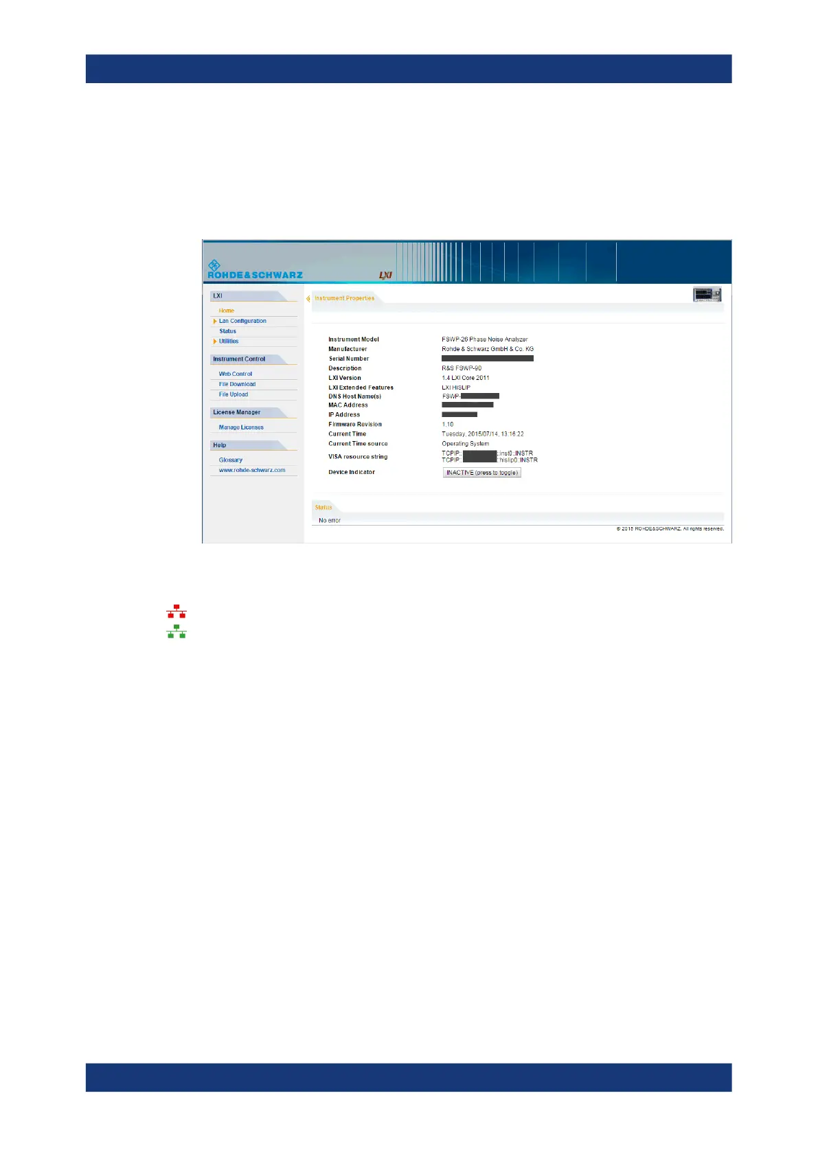 deactivate the "LAN" status icon on the status bar of the R&S FSPN. A green