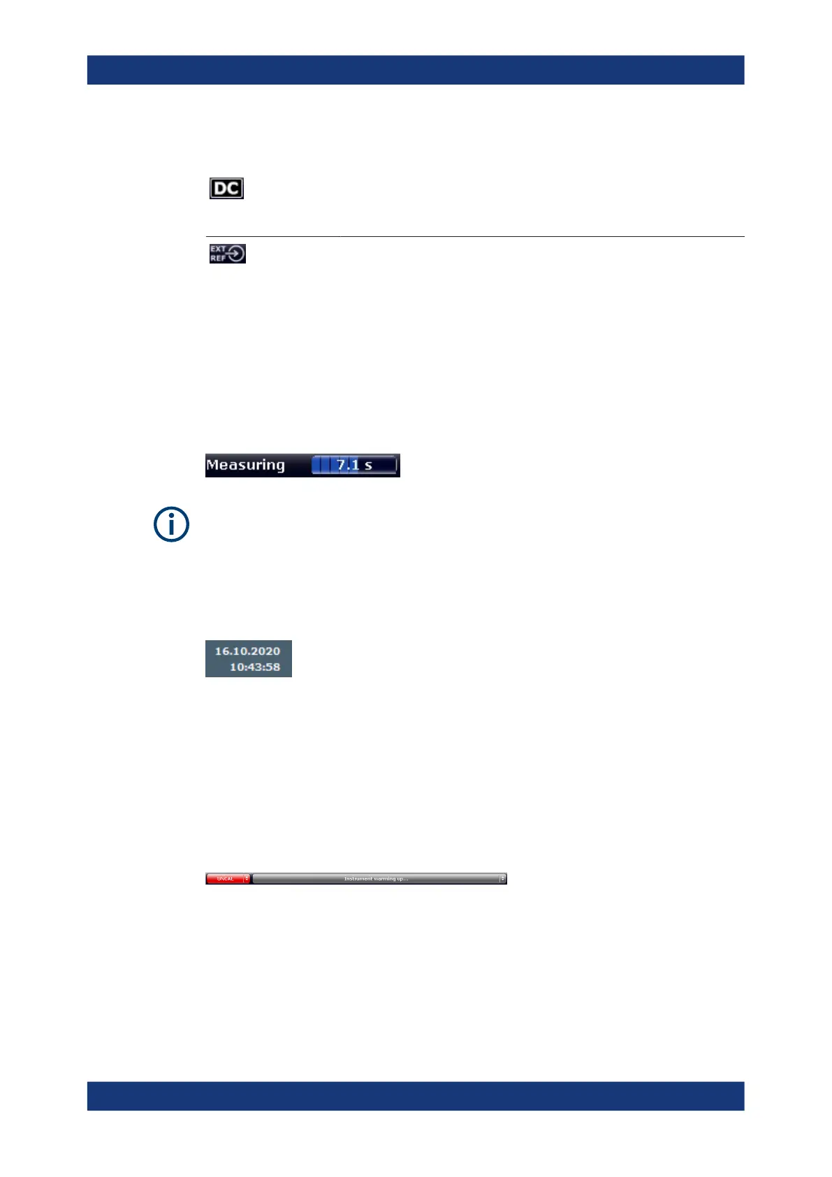 The date and time settings of the instrument are displayed in the status bar.