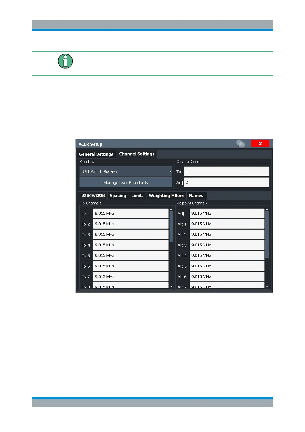 Tx channels. Thus, only enter one value if all Tx channels have the same bandwidth.