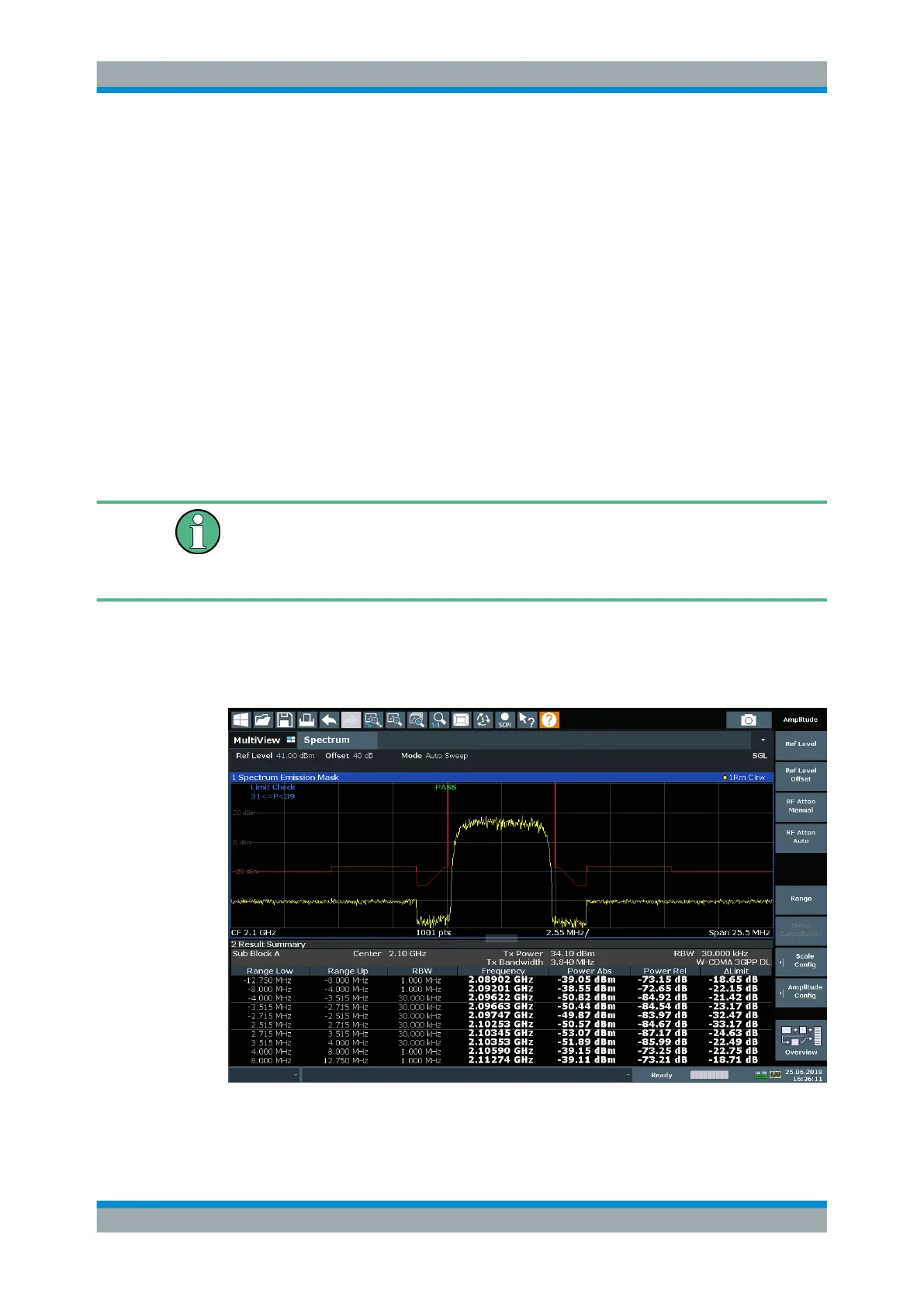 As a result of the Spectrum Emission Mask measurement, the following results are dis-