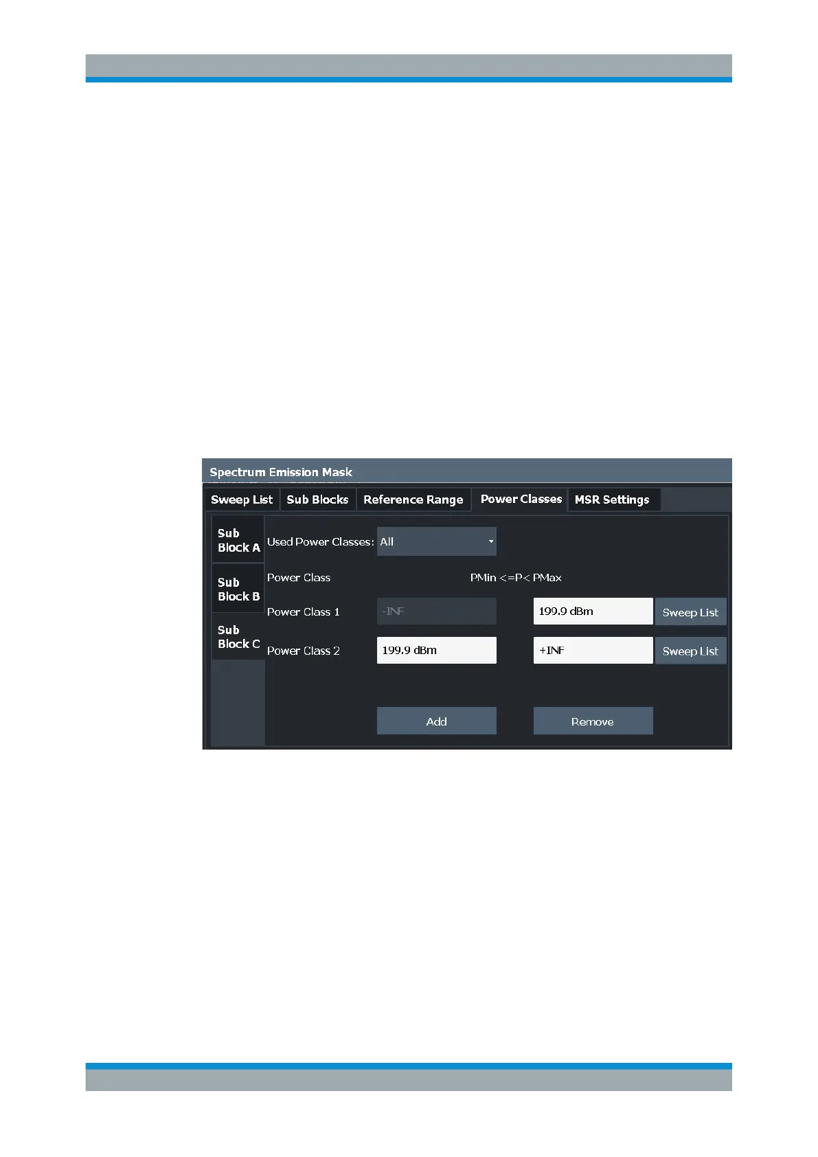Defines which power classes are considered for the SEM measurement. Limits can be