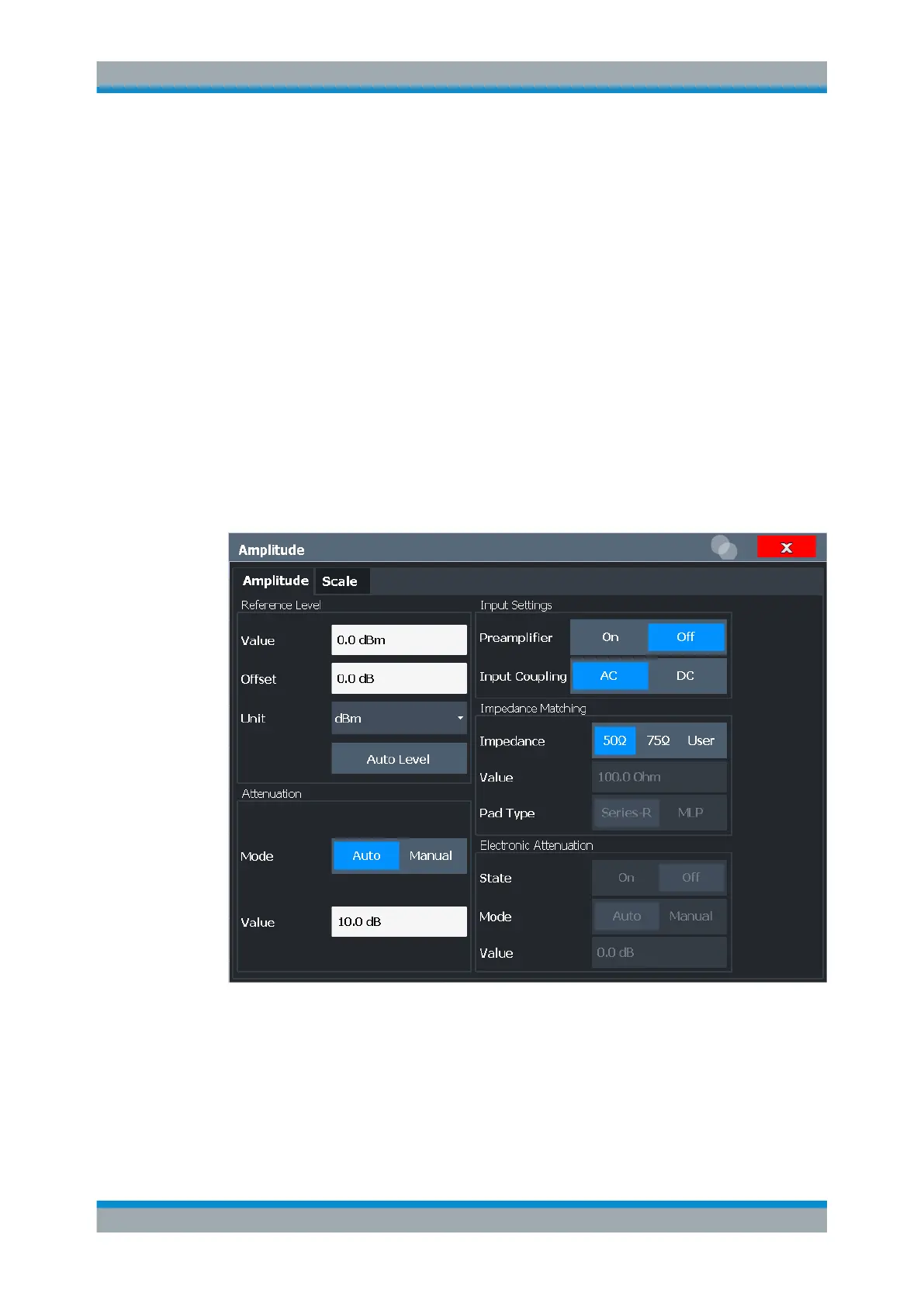 Amplitude settings determine how the R&S FSV/A must process or display the expec-