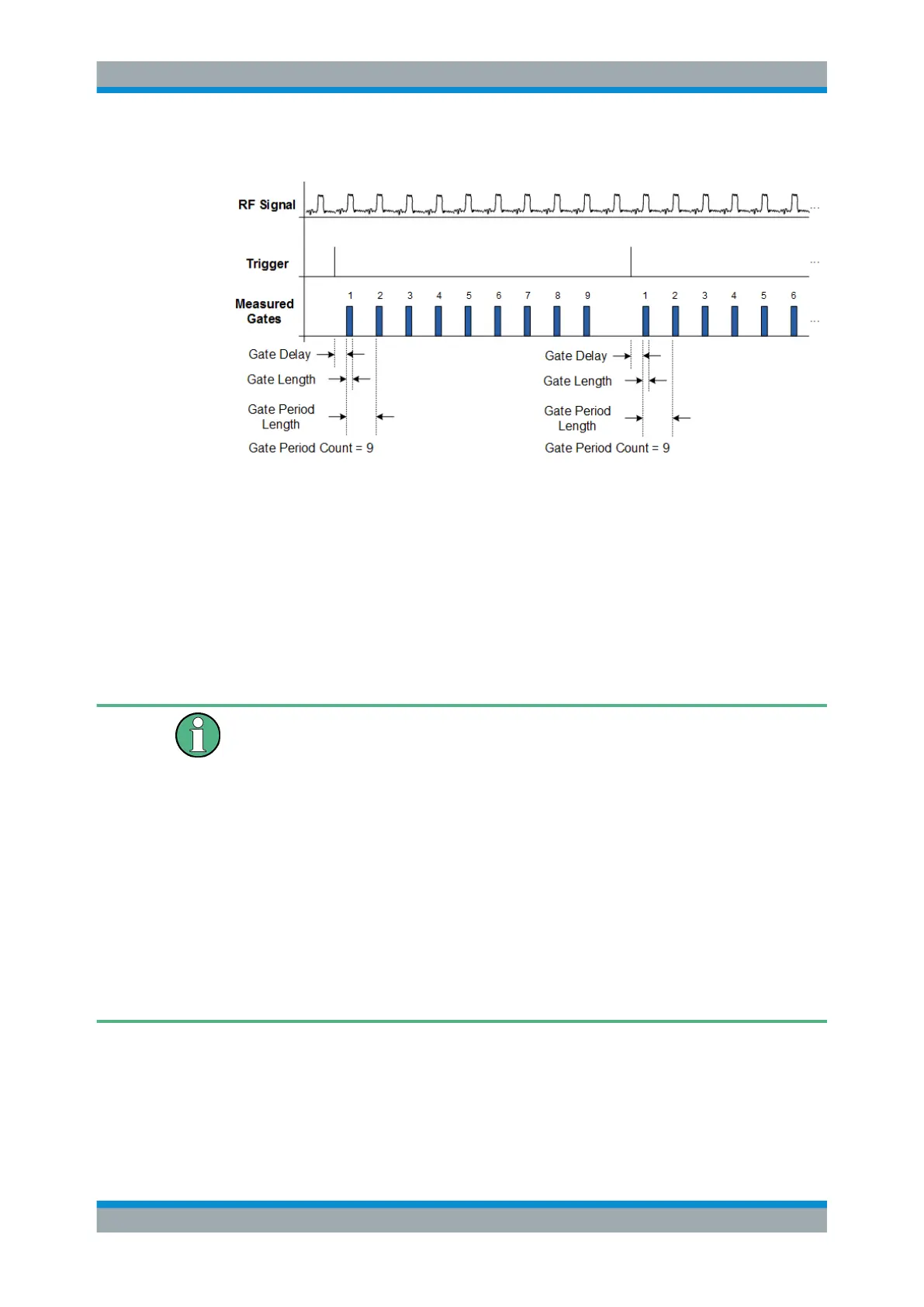 the duration of 1023 gates, a new external, IF power or power sensor trigger event
