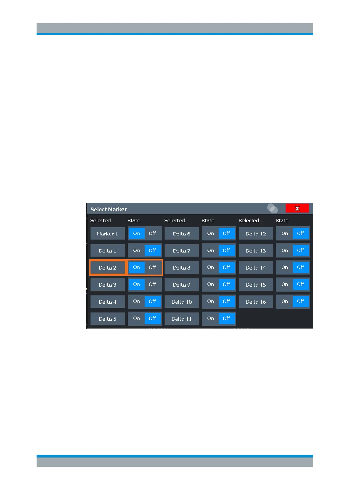 The "Select Marker" function opens a dialog box to select and activate or deactivate