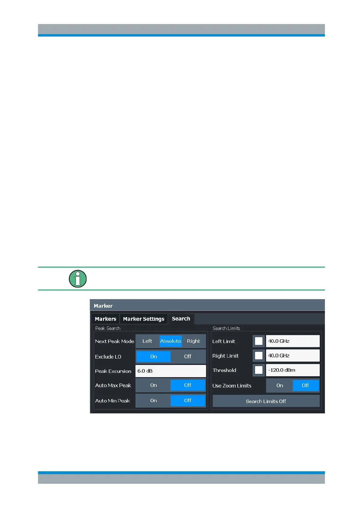 For more information on searching for signal peaks see Chapter 9.3.4.8, "Marker Peak