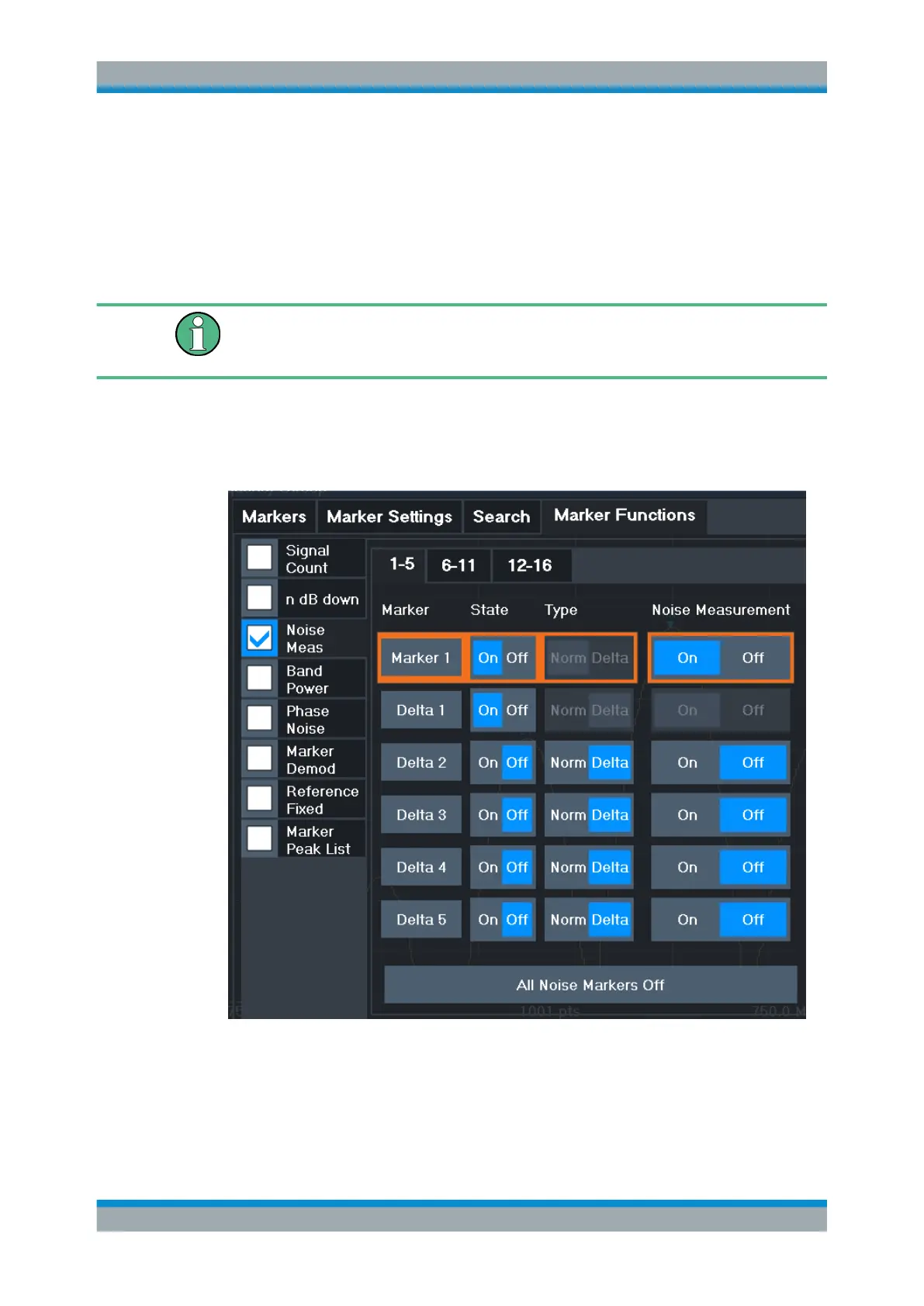 CALCulate<n>:MARKer<m>:FUNCtion:NOISe[:STATe] on page 1016