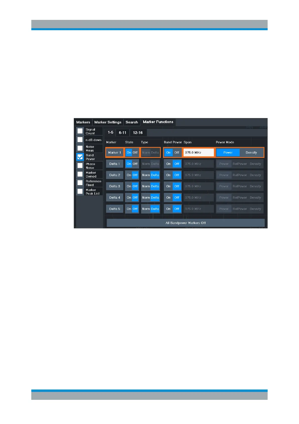 band power marker is activated, if no marker is active yet, marker 1 is activated. Other-