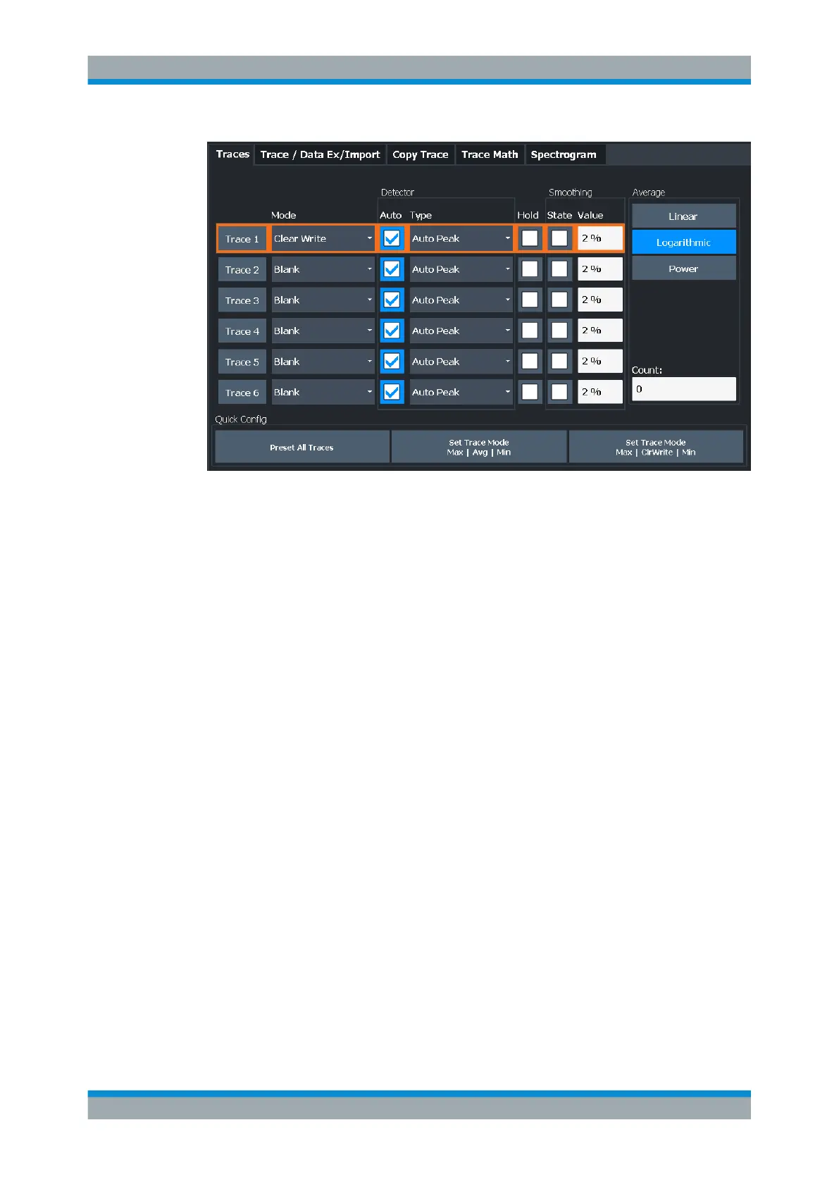 Selects the corresponding trace for configuration. The currently selected trace is high-