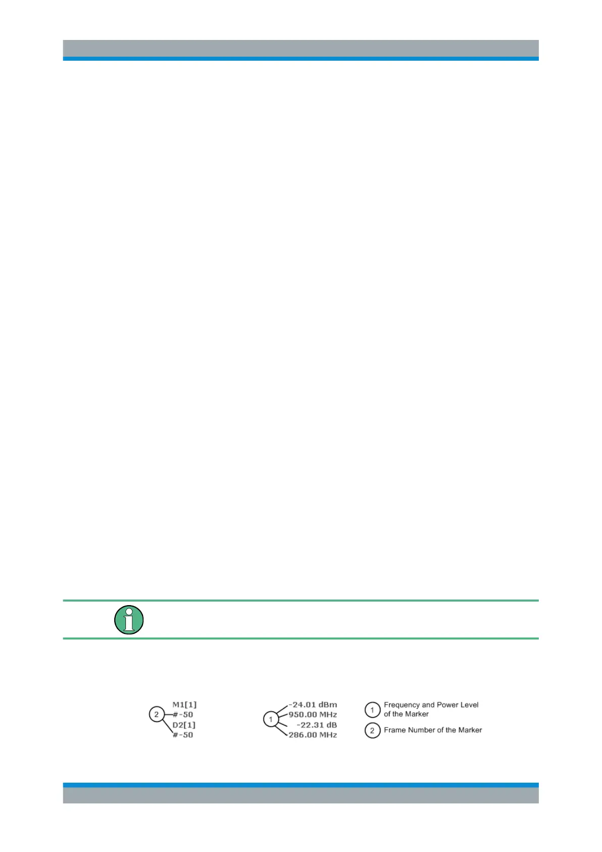 spectrogram. If more than two markers are active, the marker values are displayed in a