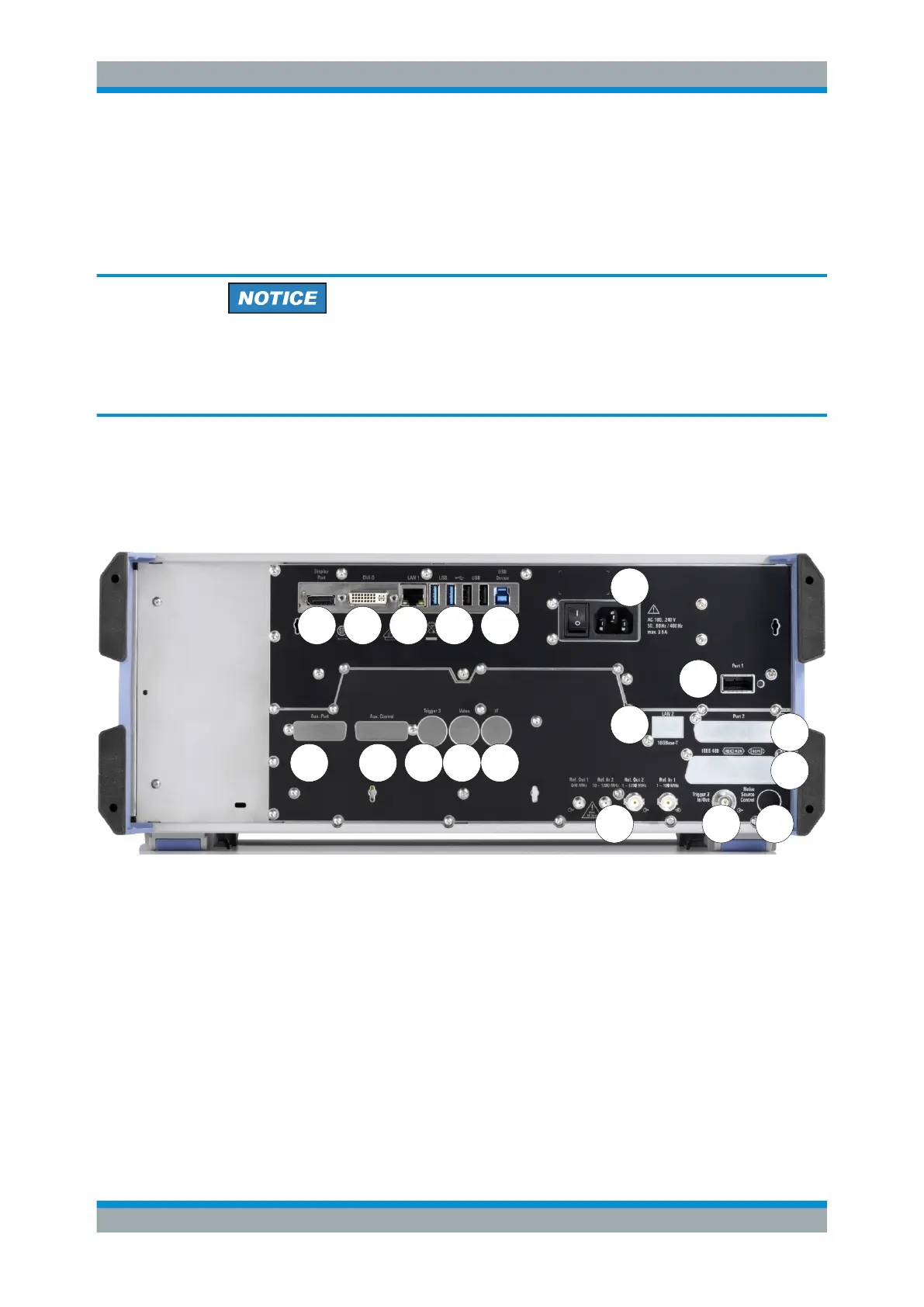 This figure shows the rear panel view of the R&S FSV/A. The individual elements are
