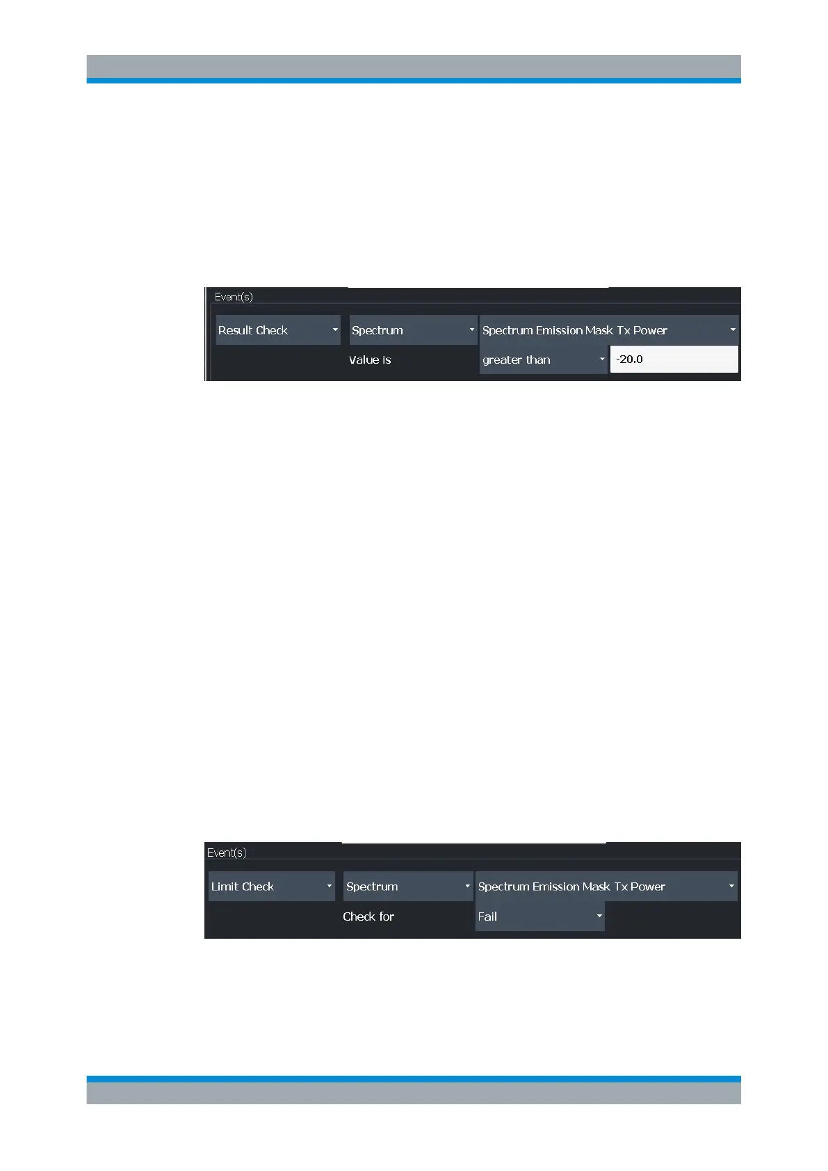 For example, to define a rule based on the spectrum emission mask Tx power, the