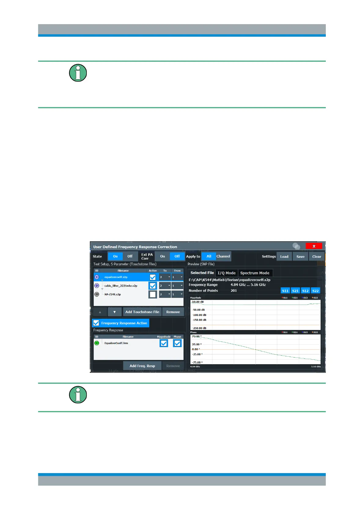 types (RF, baseband). The settings in the "User-defined Frequency Response Correc-