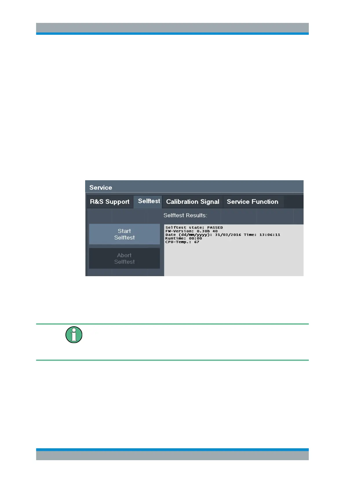 Access: [Setup] > "Service" > "Selftest"