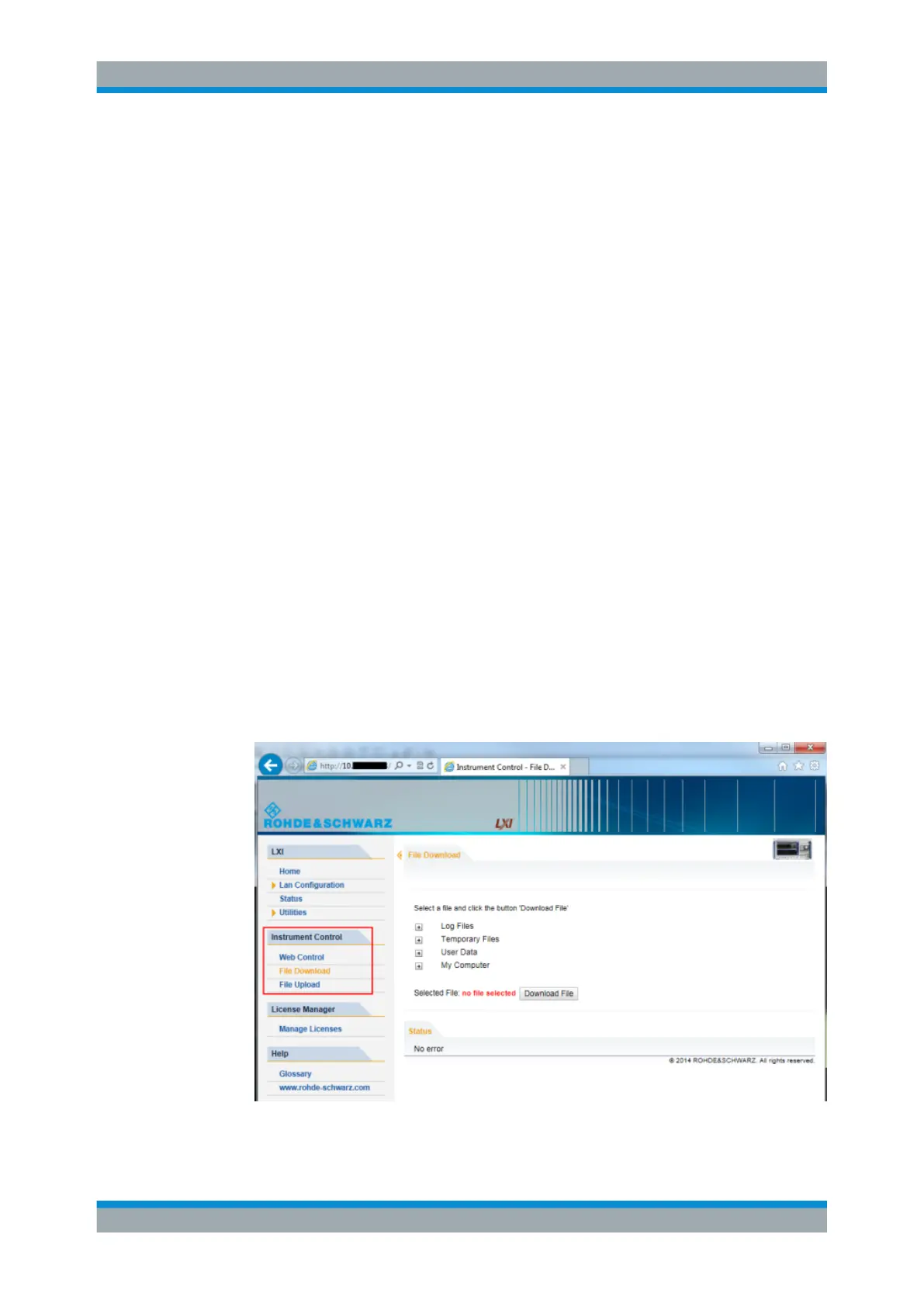 2. In the navigation pane, select "Instrument Control" > "File Upload" or "File Down-