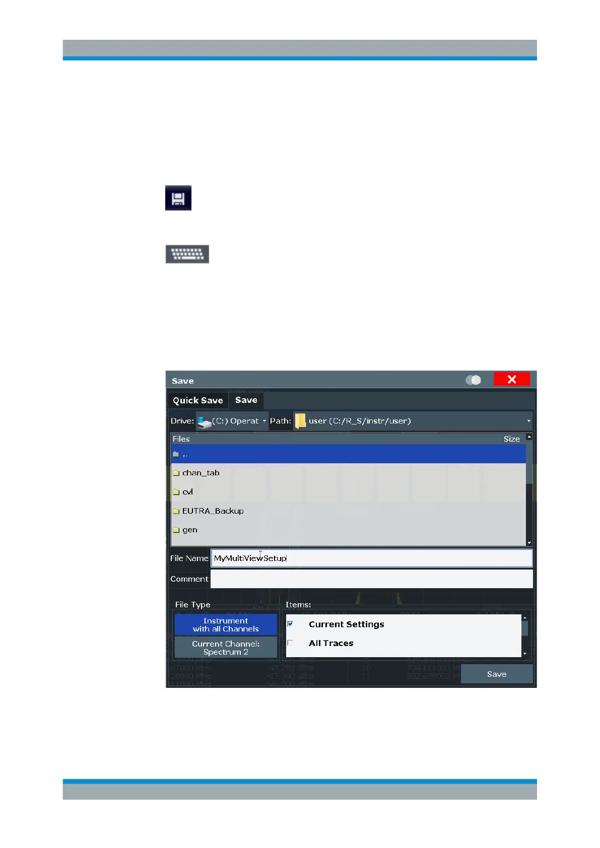 Figure 5-20: Saving the instrument settings to a file