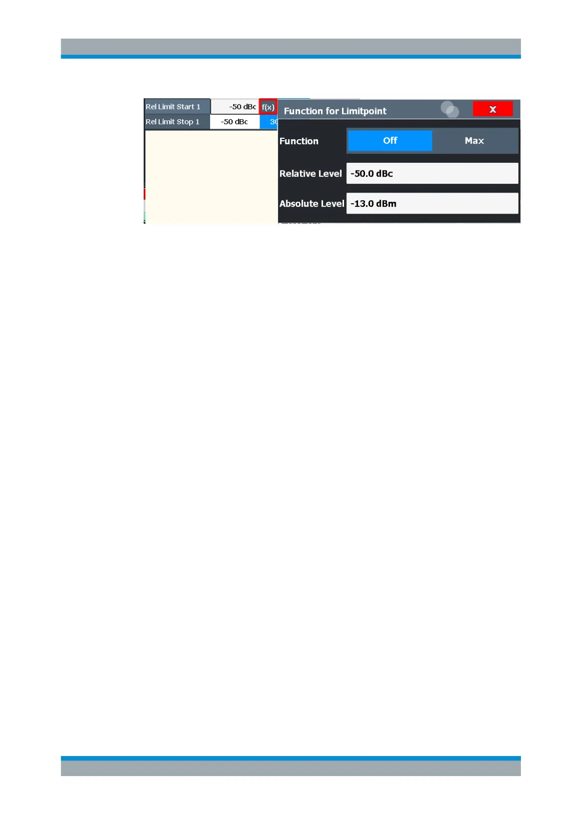If the function is set to "Max", you can define a relative and an absolute limit level. In