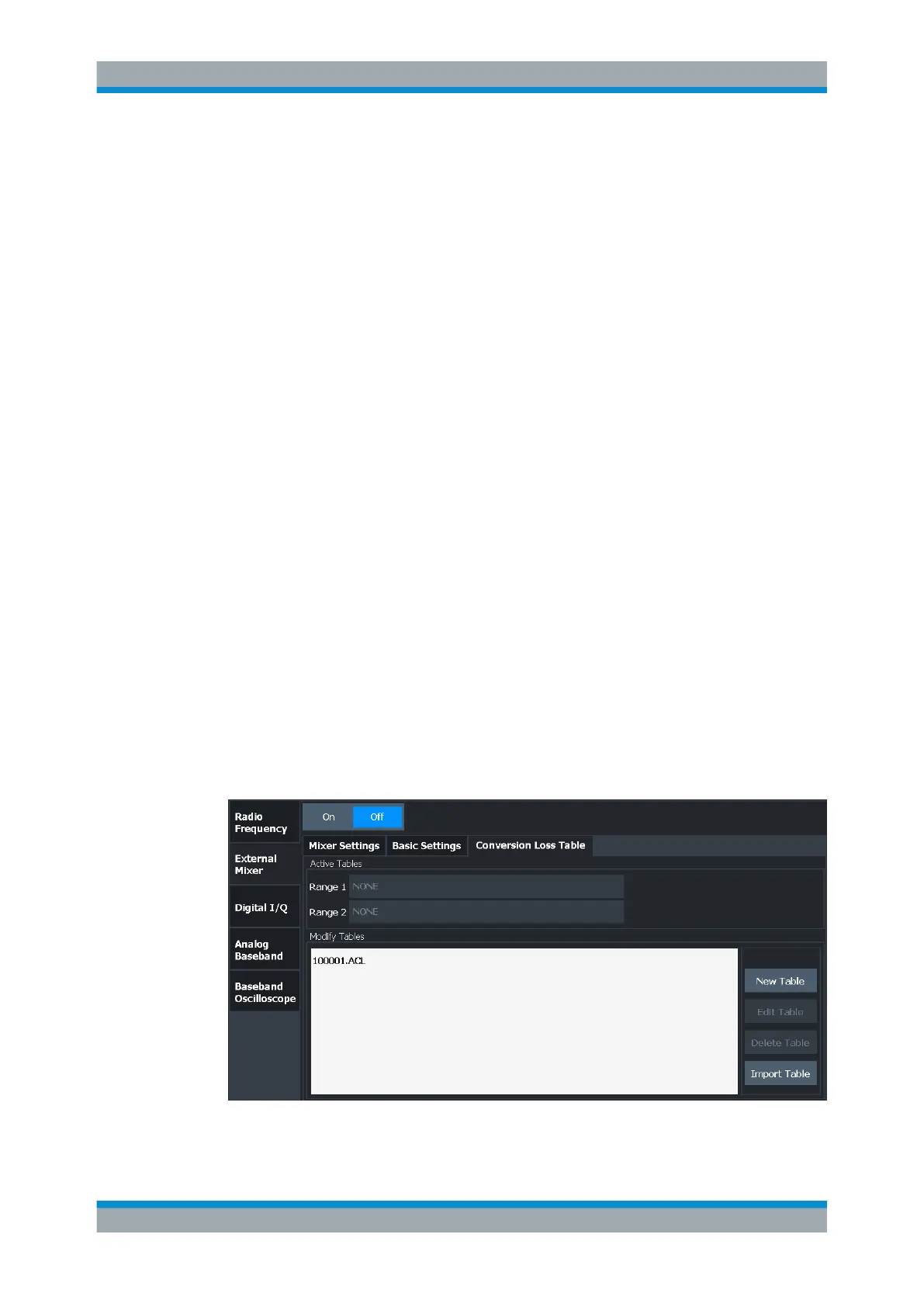 Access: [INPUT/OUTPUT] > "External Mixer Config" > "Conversion Loss Table"
