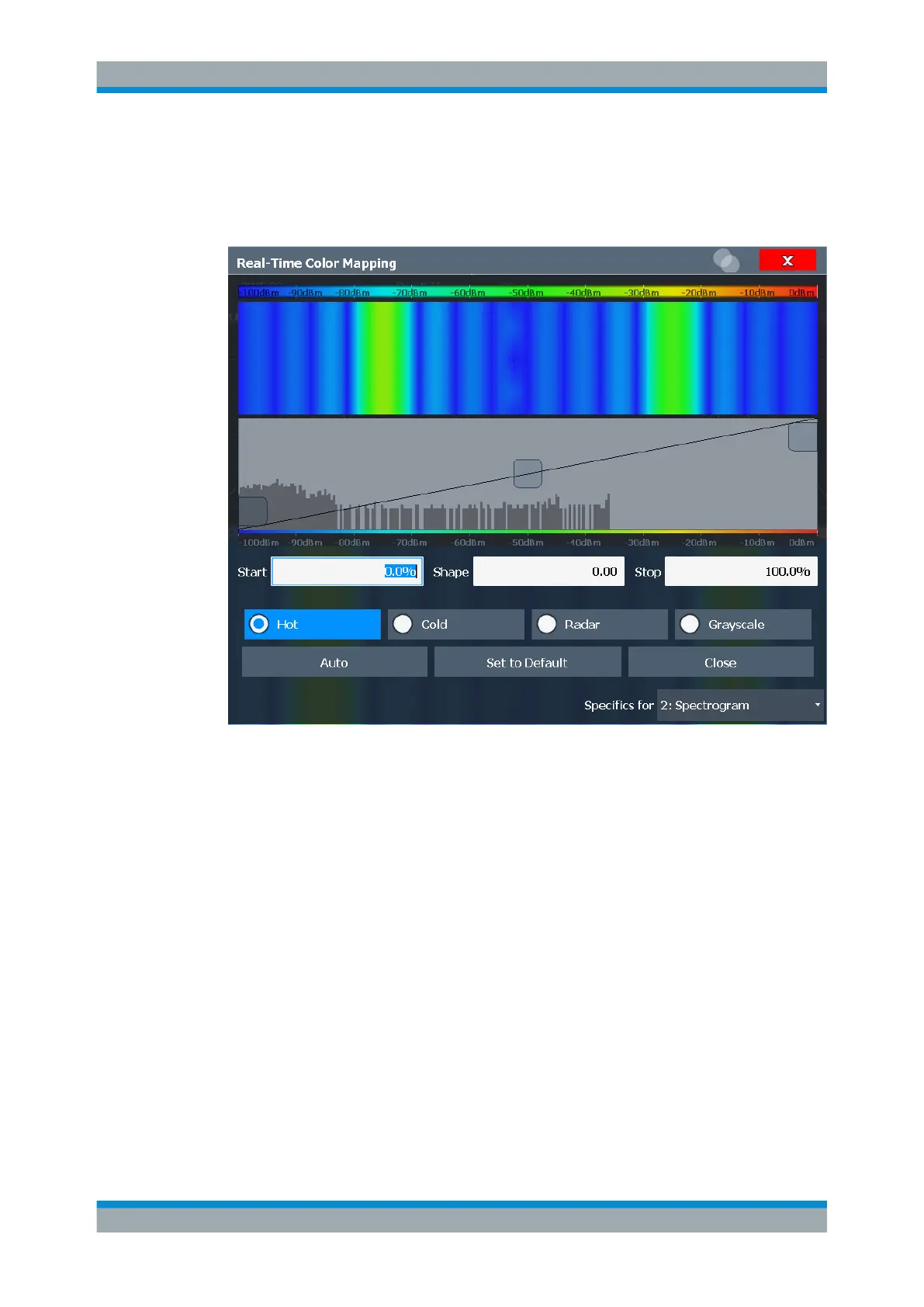 Figure 9-16: Spectrogram with (default) linear color curve shape = 0