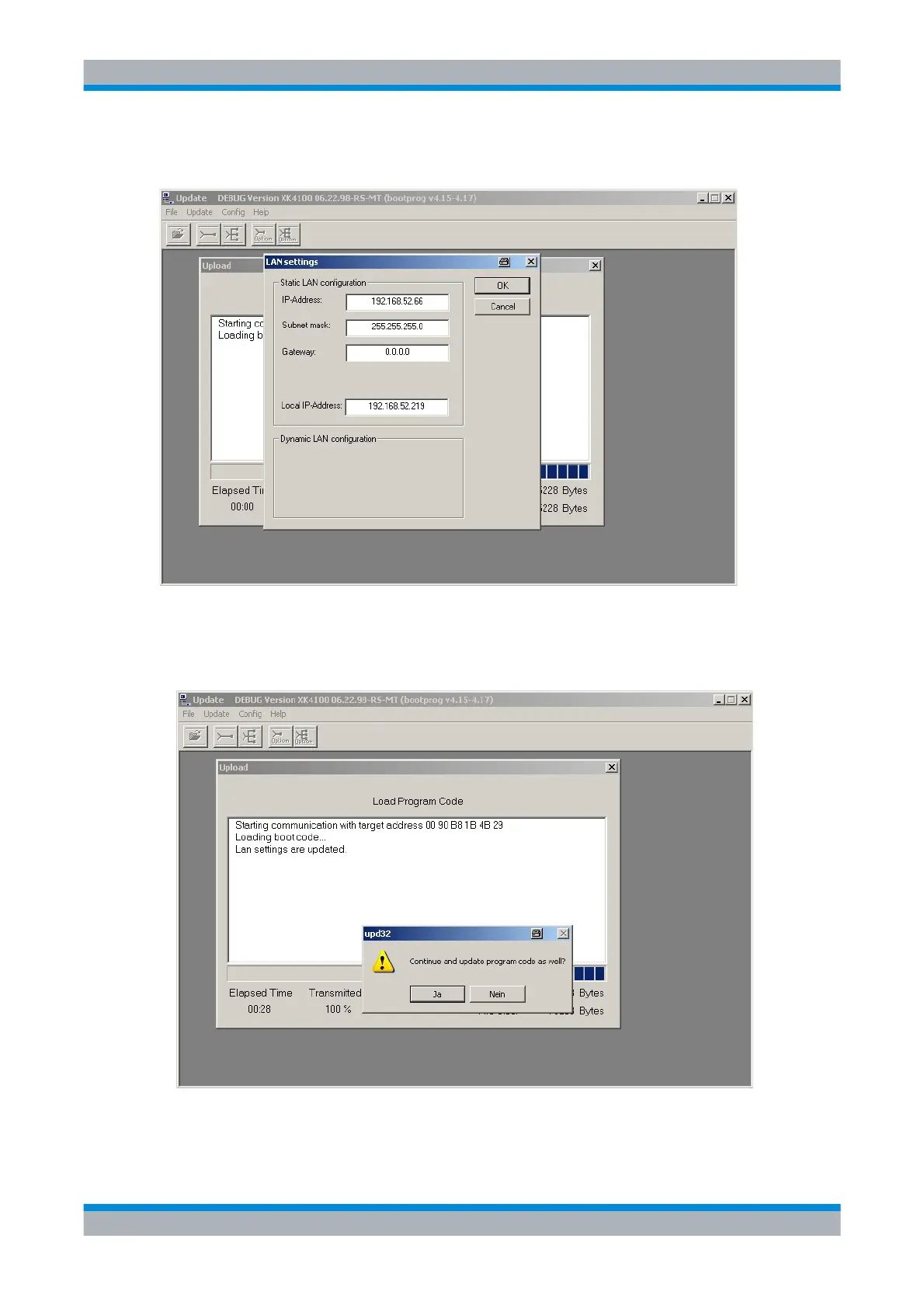 R&S MR4100E - Figure 2.18 Upd32: LAN Setting Dialog (Example); Figure 2.19 Upd32: Finish the Update
